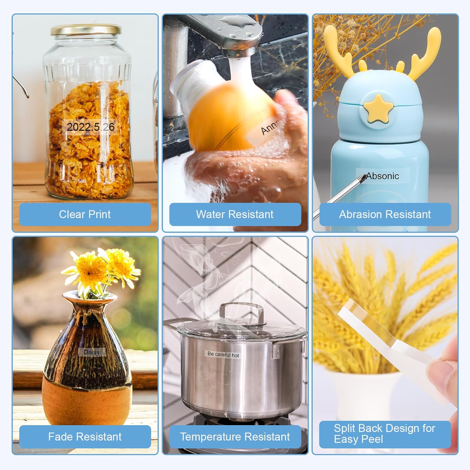 - Applications: Absonic 12mm 0.47" Label Tape used for indoor and outdoor. Widely used in offices, homes, supermarkets, laboratories, libraries, warehouses, hotels, and so on