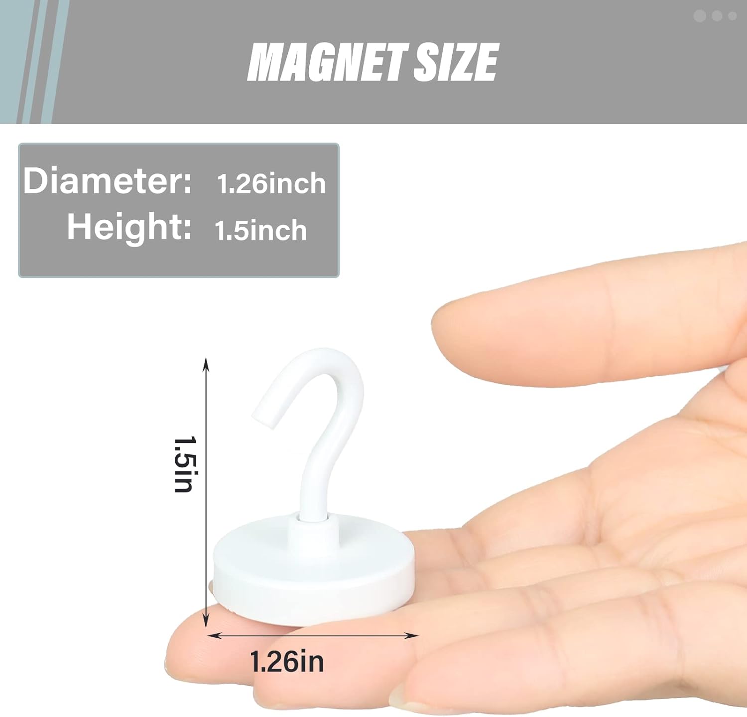 - ✔ HIGH-LEVEL PLATING- We offer 4 layers of coating on the magnet hook metal base, metal hook, and magnet. It provides this magnetic hanger with a shiny, rust-free, and mirror-like finish. Coated magnetic hook particularly exhibits an excellent anti-corrosive properties and scratch resistance. Maintenance-free, no rust!