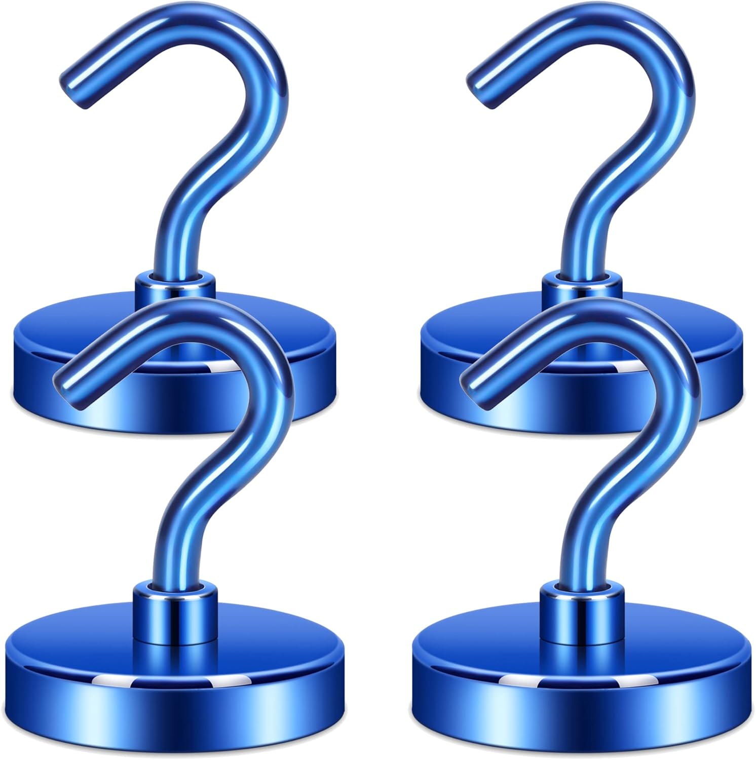 Neosmuk Magnetic Hooks Heavy Duty, Strong Magnet with Hook for Fridge, Super Neodymium Extra Strength Industrial Hooks for Hanging, Magnetic Hanger for Toolbox, Cruise, Grill(Navyblue,4 Pack)