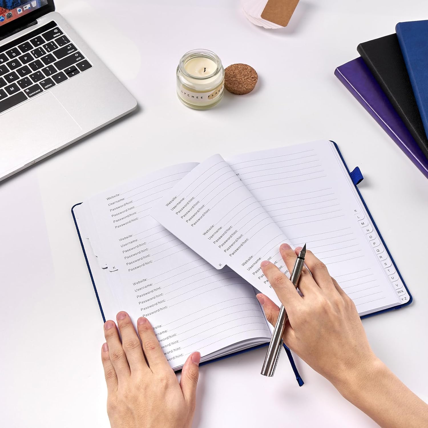 - Convenient password management with ample space: Unlike other password books, we have upgraded to individual letter indexing, providing ample space for recording passwords. Each letter has 6 pages with 4 entries per page. It enables easy recording and retrieval of various important login information, providing convenience for your password management.