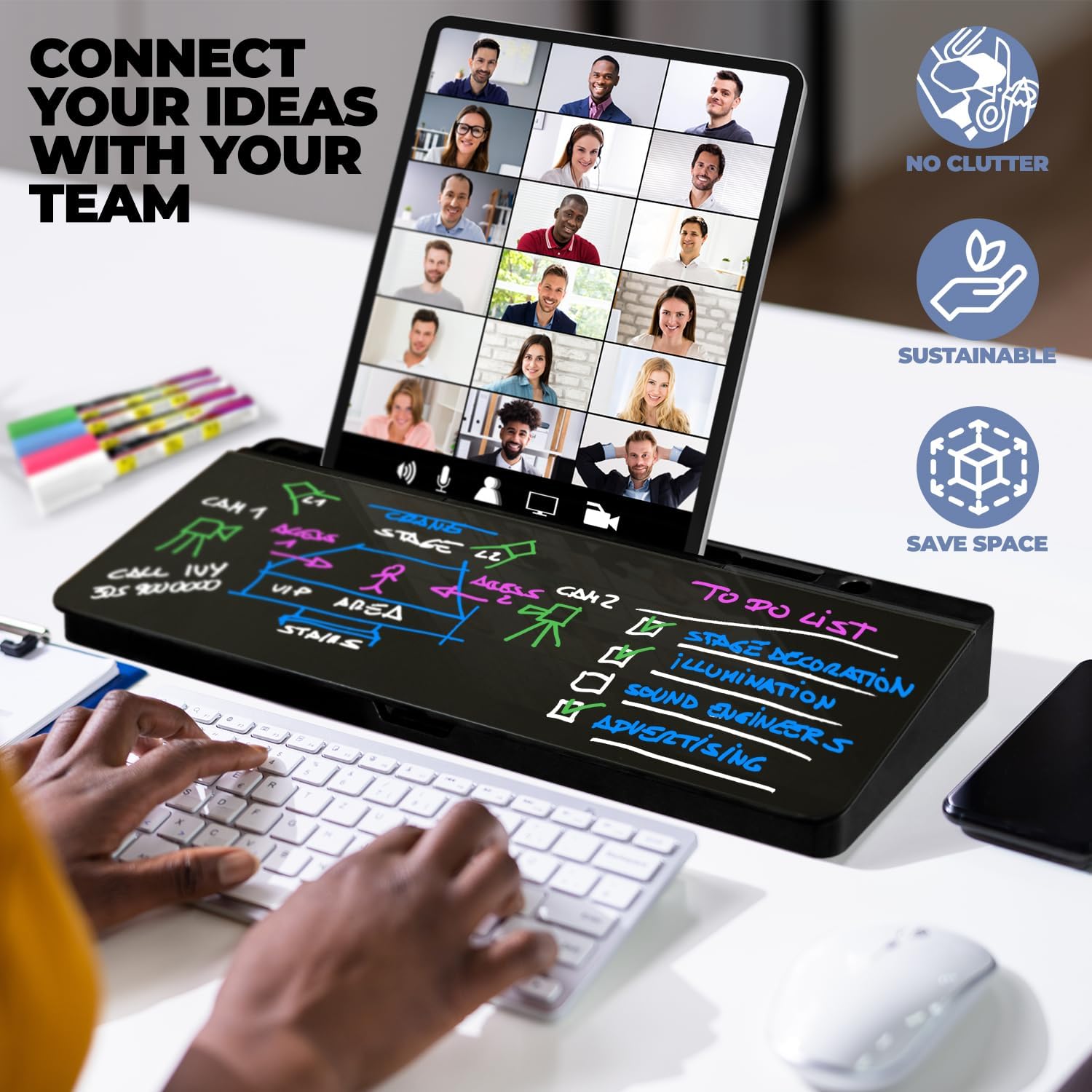 - Elevate Your Setup - Designed with a dedicated slot for your smartphone and tablet, this desktop dry erase board helps you maximize your workspace. It's even designed with a nifty charging slot.