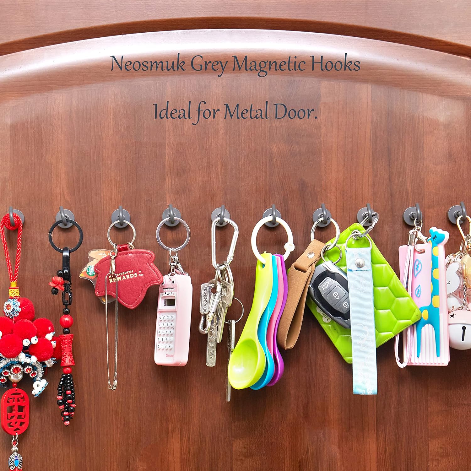 - ✔ VERSATILE USE- Neosmuk’s strong neodymium magnetic hooks were endowed with a strong capability for holding various items wherever there is iron or steel. This magnet hook is a perfect magnetic key holder. You can also hang your tools next to the toolbox with this magnetic hook. Our magnetic hooks are great for grill, pot, cup, utensils, and oven.