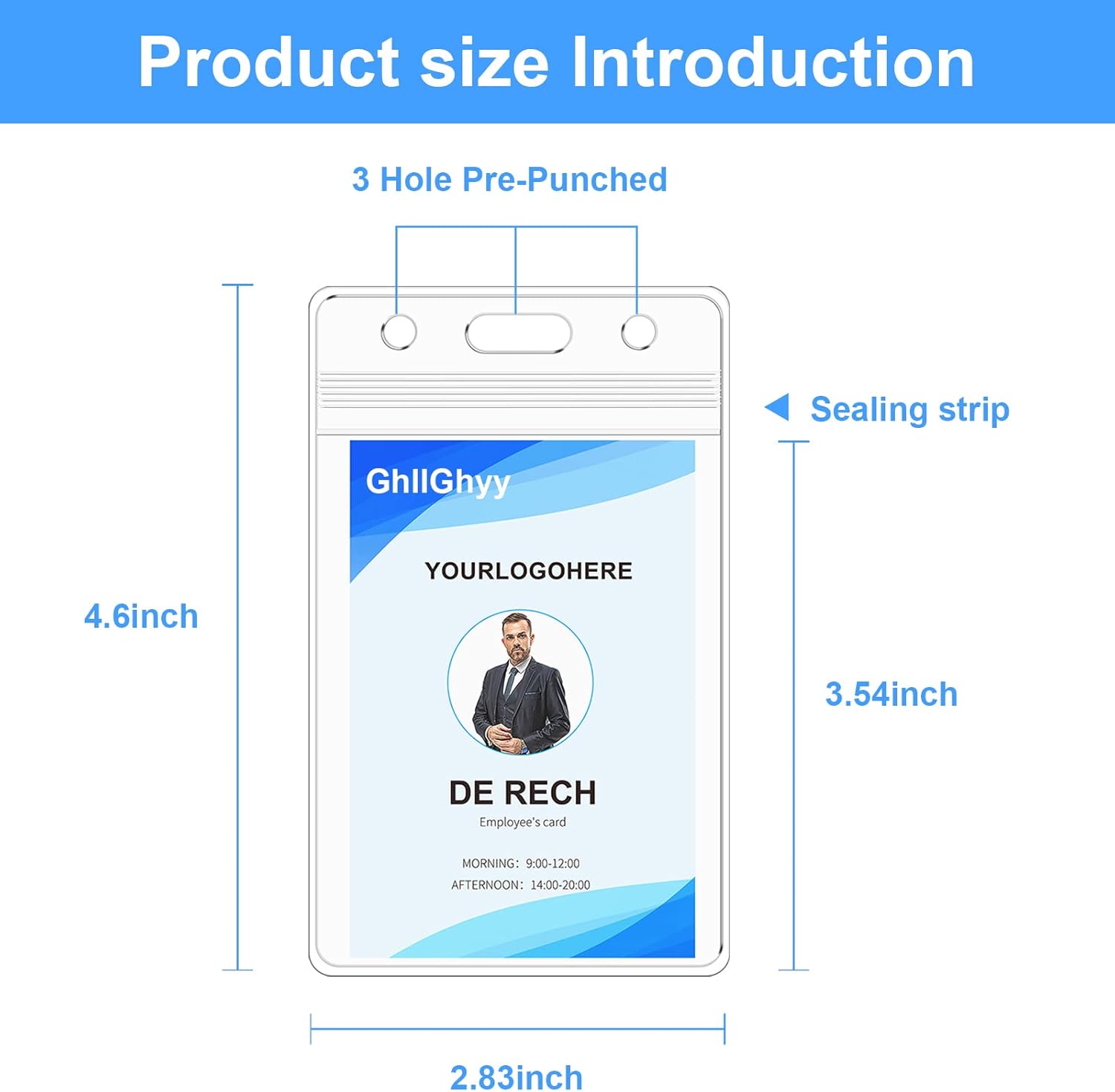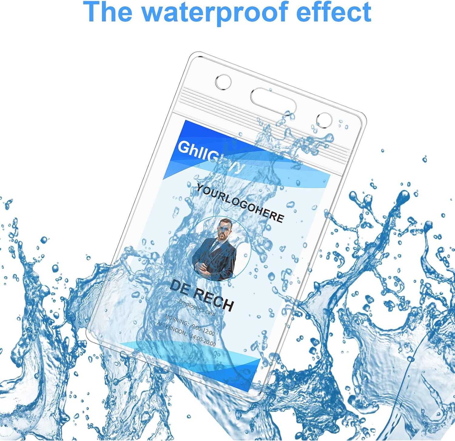 50 Pack Extra Thick Name Badge Holders, Heavy Duty & Sealable Waterproof Vertical ID Badge Holders, Durable Clear PVC Plastic Badge Sleeve for Credit Card/Shcool Work Badge/Room Key/RFID