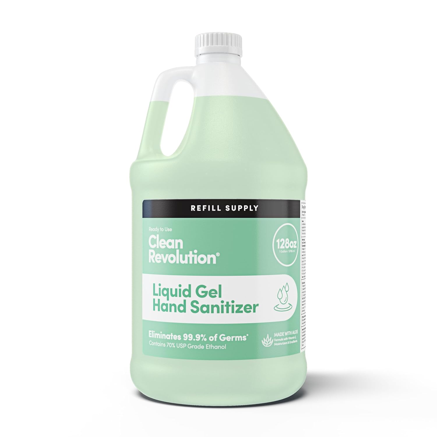 Clean Revolution Liquid Gel Hand Sanitizer, 128 Fl. Oz Refill Supply Container| Eliminates 99.9% of Germs | Gentle & Aloe Enriched | 70% USP Medical Grade Ethanol, Medical Facility Compliant
