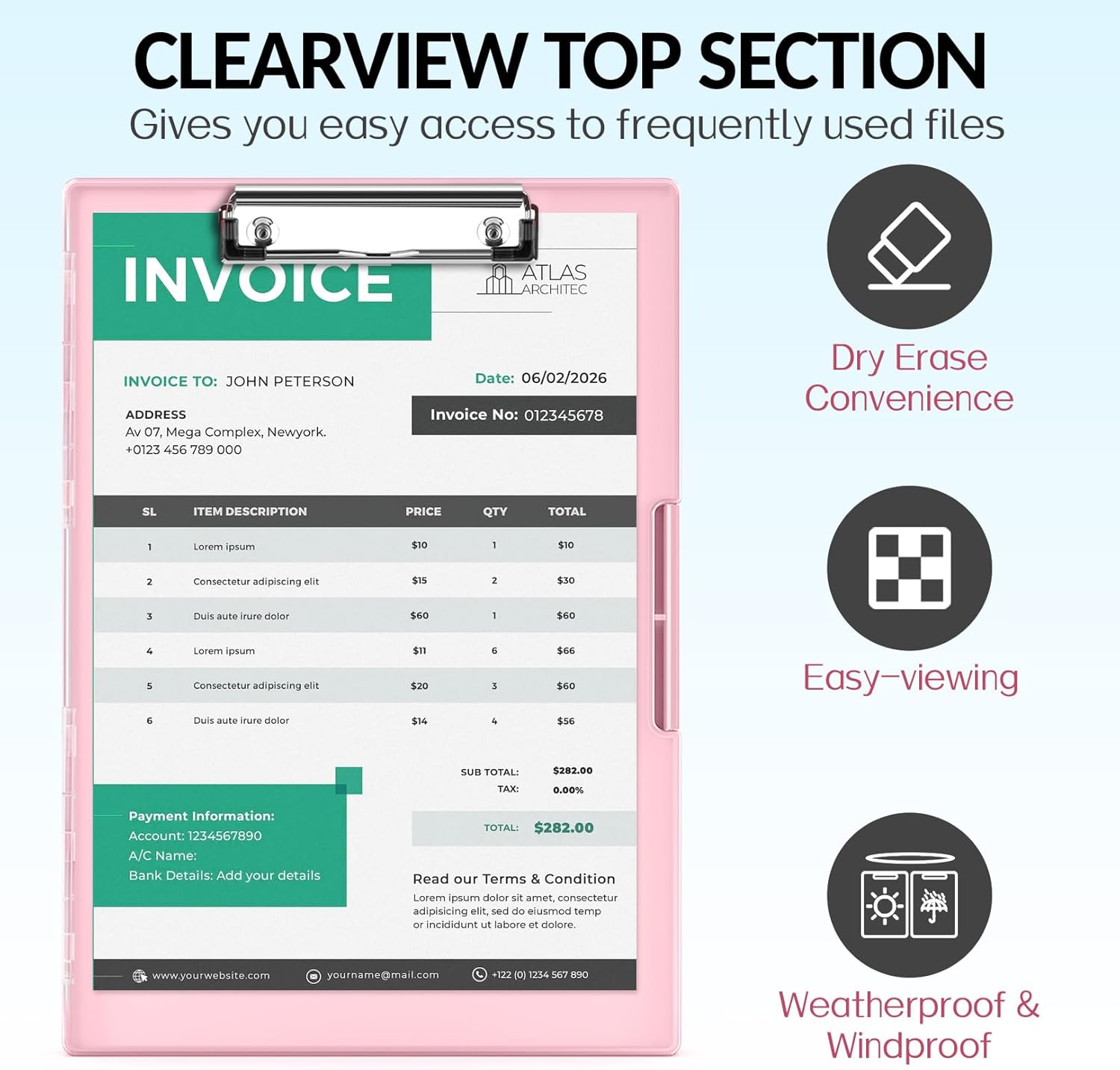 - Smooth Writing Surface: Each clipboard is made of solid plastic to give a hard, flat and smooth writing surface that makes it simple to take notes, jot down ideas, and brainstorm comfortably without a desk
