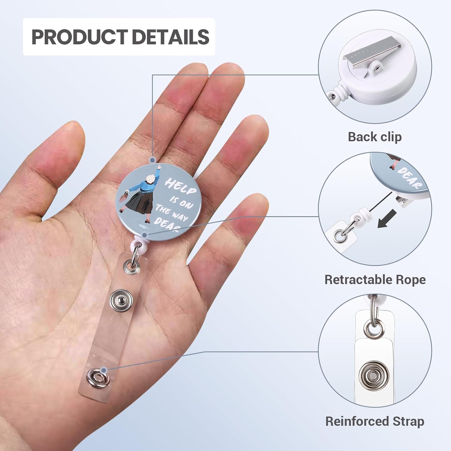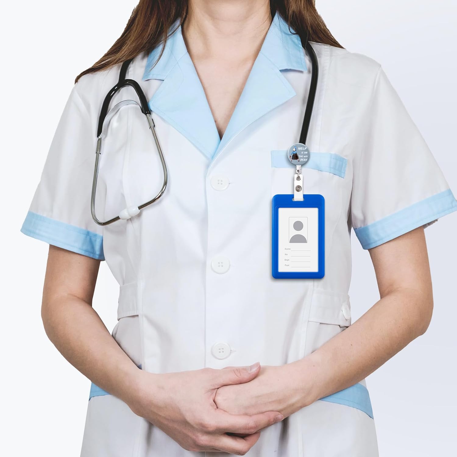 Badge Reel, Retractable Badge Clip for Nurse, Funny Badge Holder, Help is On The Way Dear Badge Reels, Retractable Lanyard for ID Badges, Mrs. Doubtfire Name Badge, Cute Nursing Gifts