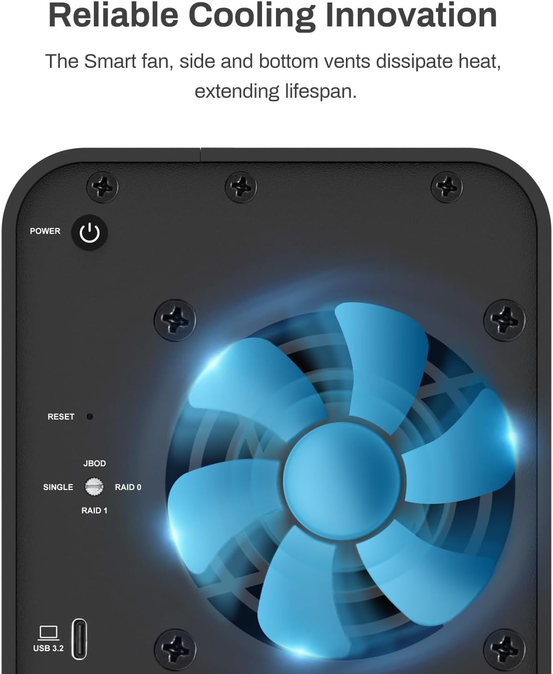 - Super-large Storage Space: The D2-320 USB storage enclosure can support up to two 3.5" and 2.5" SATA HDD, as well as 2.5" SATA SSD, with a maximum capacity of 22TB per drive, providing users with up to 44TB (22TB x 2) of storage space.
