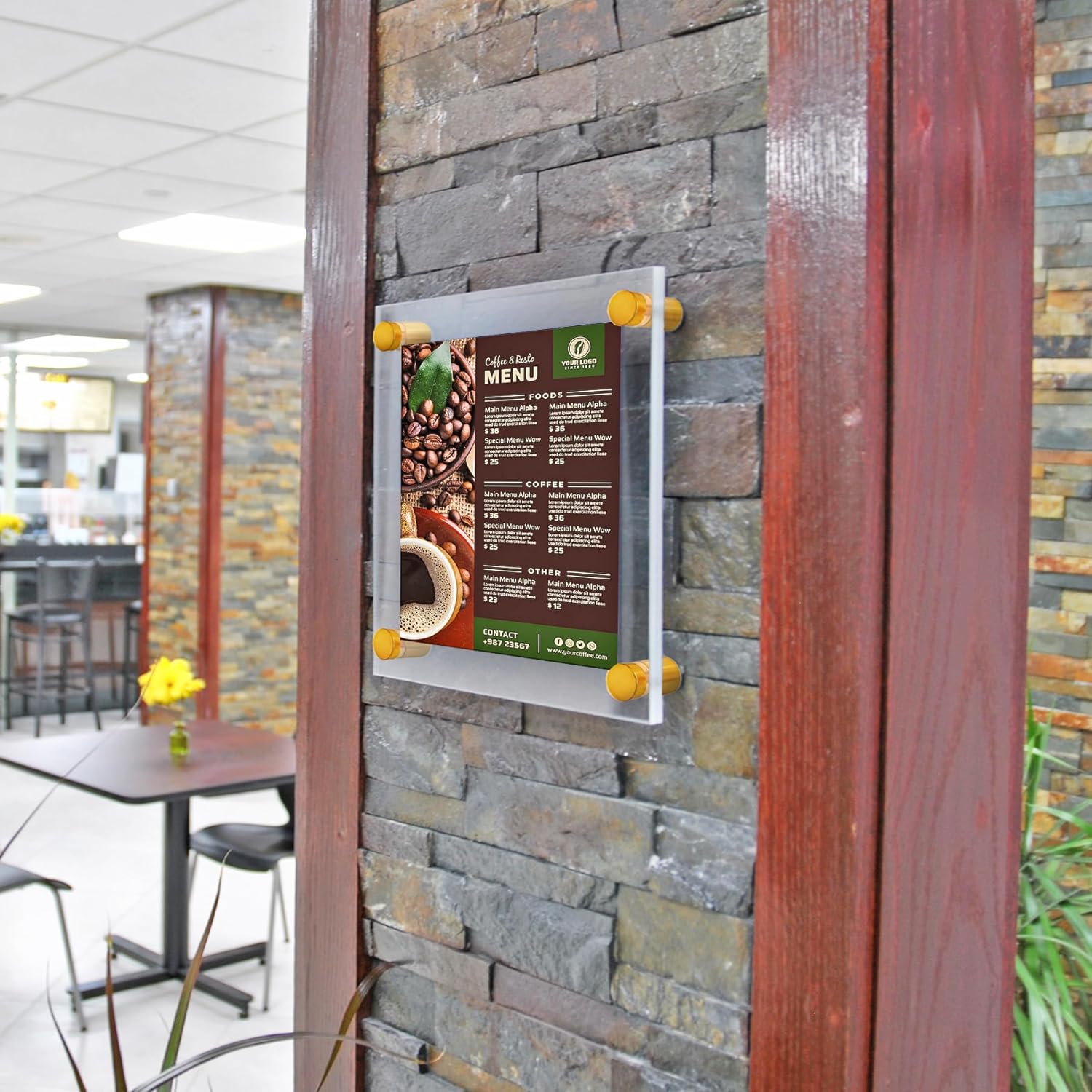 - ✅ HARDWARE INCLUDED - Each floating sign holder frame set includes 2 acrylic panels that are 3/16” thick, 4 standoff caps and hanging hardware. Note: Large format sizes: 24” x 36” and 30” x 40” include 6 standoffs and caps.