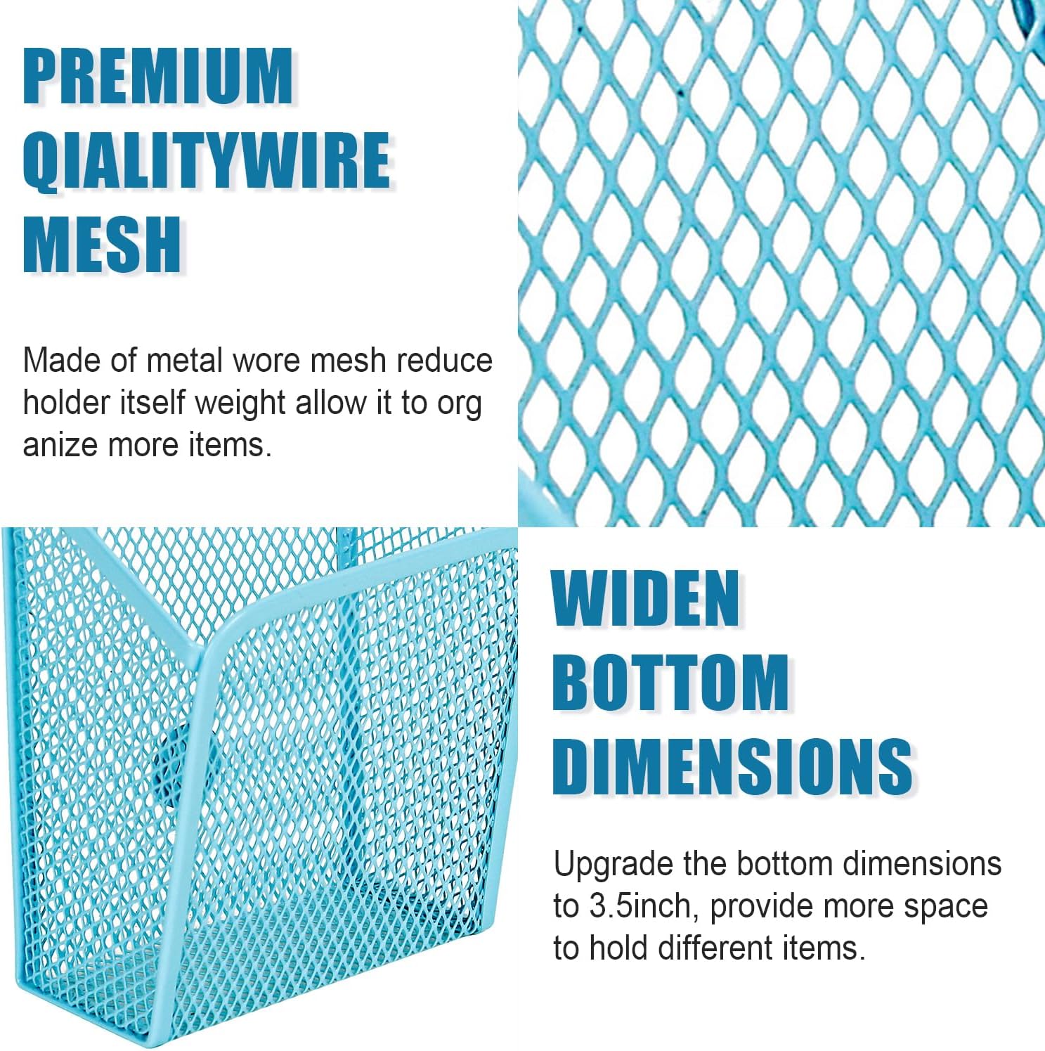 LUCYCAZ Magnetic Pen Holder - Single Magnetic Pencil Locker Holder Organizer, Blue Mesh Marker Holder Pen Basket for Whiteboard, Refrigerator and Locker