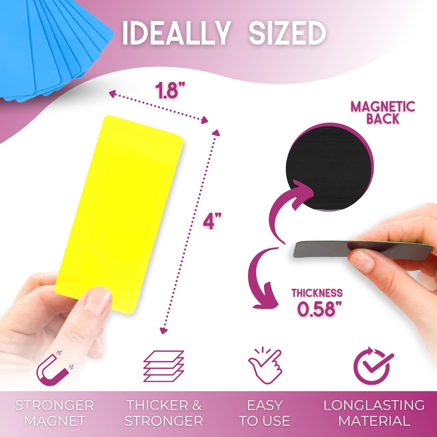 Availey 40 Pieces (4 x 1.8") - Full Colored Magnetic Dry Erase Labels - Reusable Strips for Classroom Home Office Garage Refrigerator Blank Writable Erasable Cards Name Tags Students Locker Shelf
