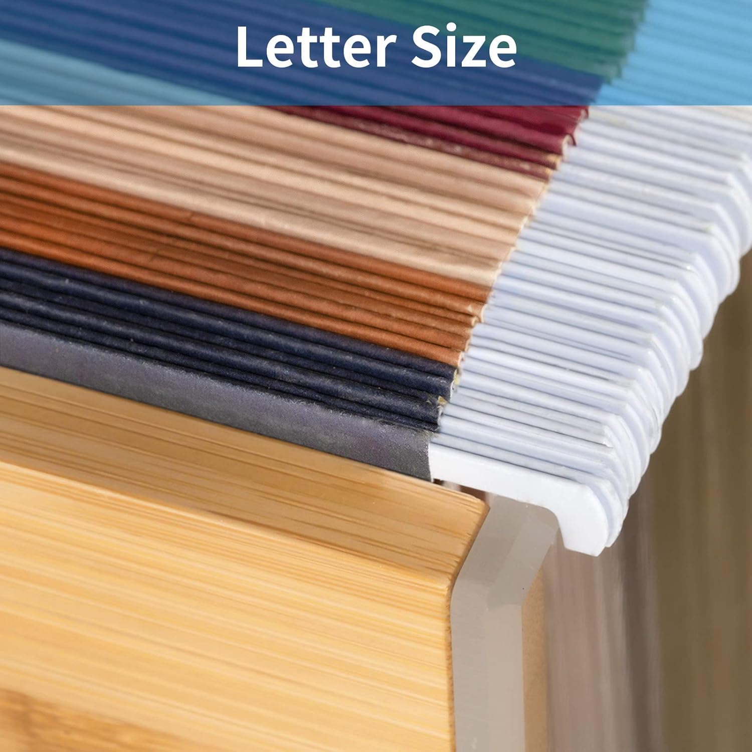 - Unique Acrylic & Bamboo Design: This hanging file folder organizer combines acrylic and bamboo materials. The main body of filing box is made of acrylic, the edges and base are made of bamboo, making it both practical and visually appealing