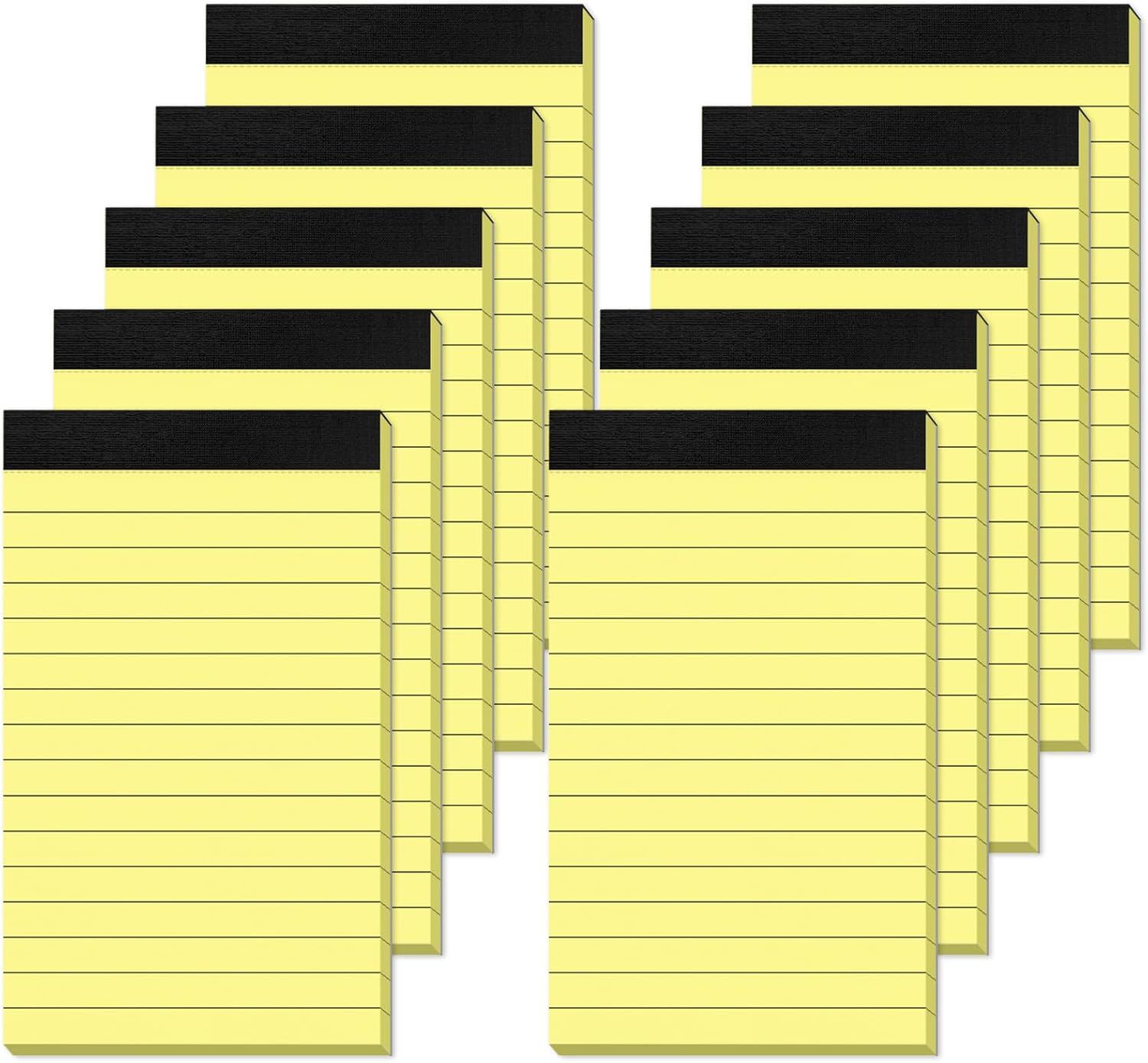 - [KEEP NOTES SECURE]: Each yellow small writing pads 3x5 has black top bindings. The yellow memo pads 3x5 perforated top edge allows for easily and neatly removing individual sheets of paper. Lined notepad has sturdy and durable header and bindings keep the pages of your crucial notes protected, your writing pad won't fall apart under pressure like some lesser notepads. Writing pads features a cardboard backing for extra support when you writing or taking note, perfect for writing on the go.