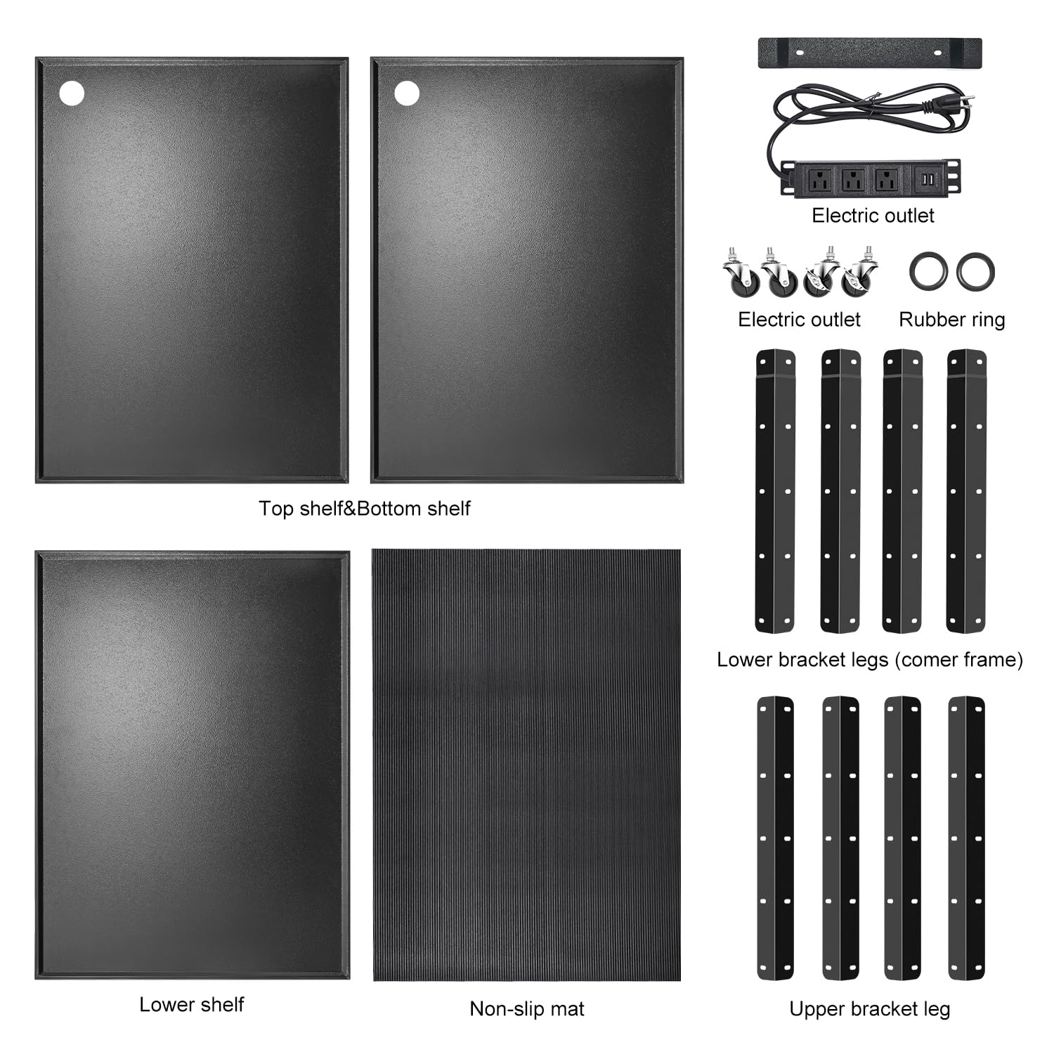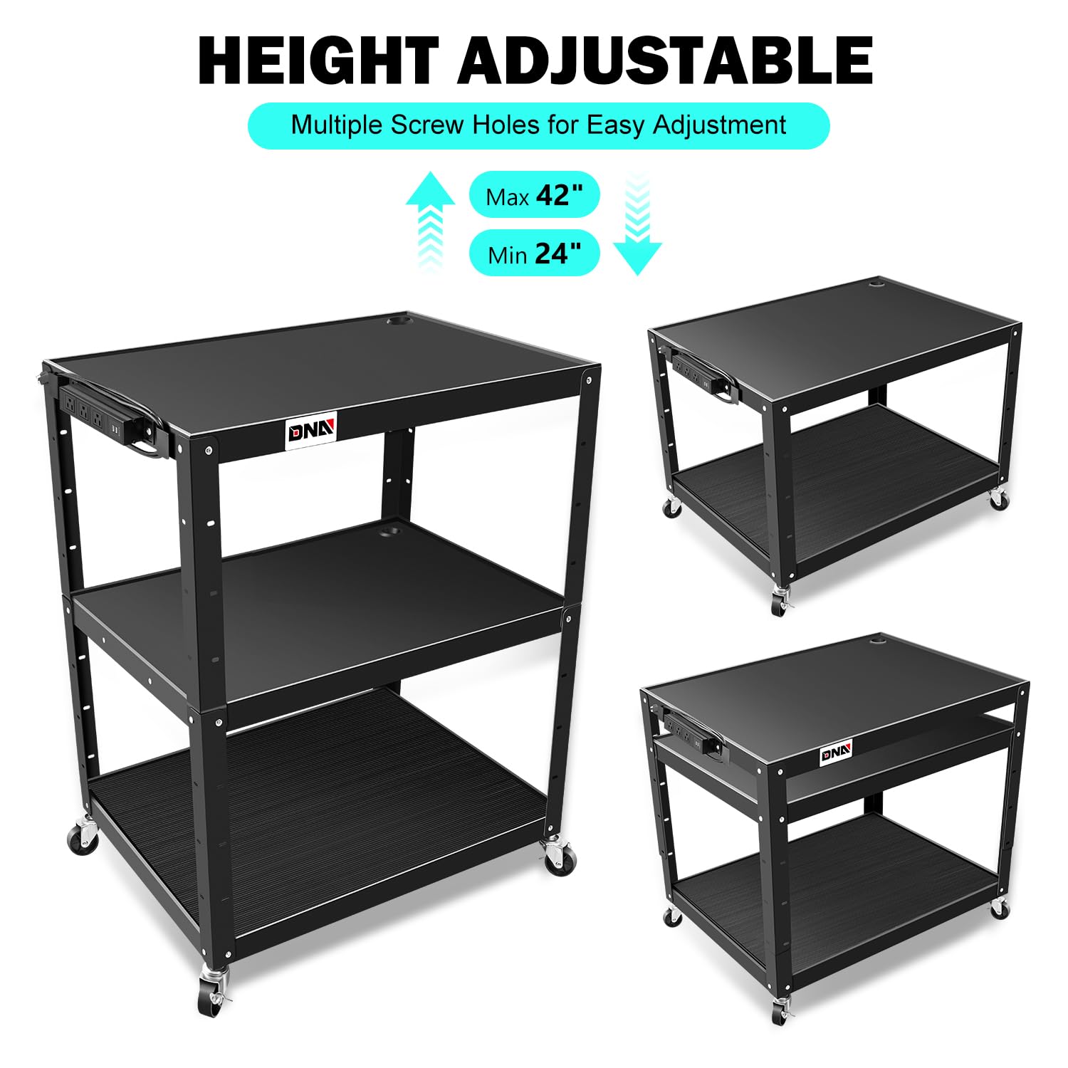 DNA MOTORING 3-Layer Utility Steel AV Cart with Wheels Power Strip, 35" x 25" x 24"-42" Height Adjustable Rolling Projector Cart,TOOLS-00137