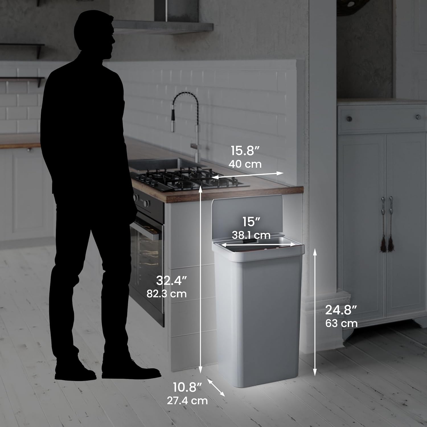 - 100% TOUCHLESS & HYGIENIC – Just the motion of your hand opens the lids automatically! This touchless trash can is the hygienic and convenient choice.