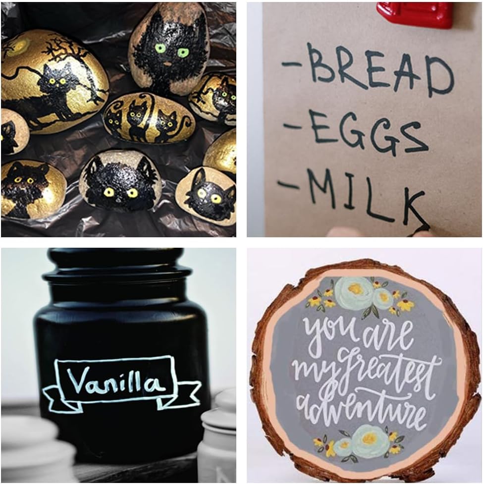 - 【Multipurpose】These wonderful paint pens can be used on multiple surfaces, such as rock, ceramic, wood, leather, plastic, canvas, stone, glass, metal, chalkboard craft supplies etc