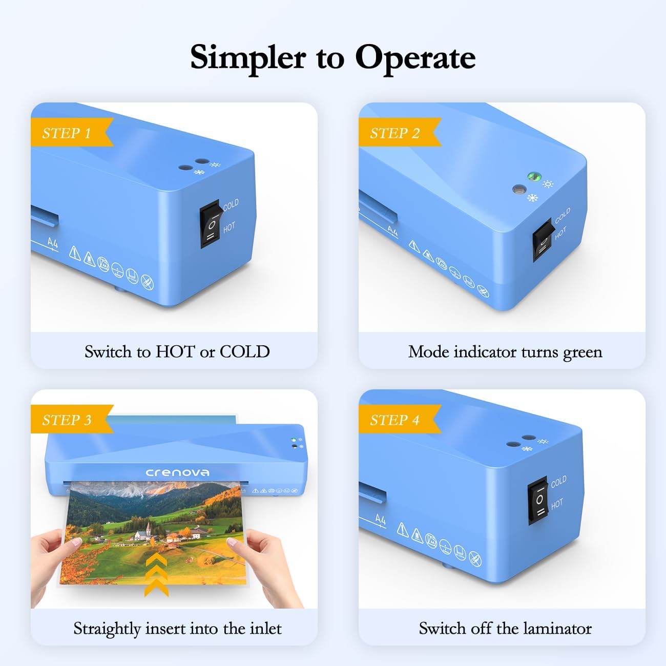 Crenova Laminator Machine with 10 Laminating Sheets, A4 Laminating Machine Hot & Cold with Fast Warm Technology, Thermal Laminator 9 Inch for Home Office School Business Blue