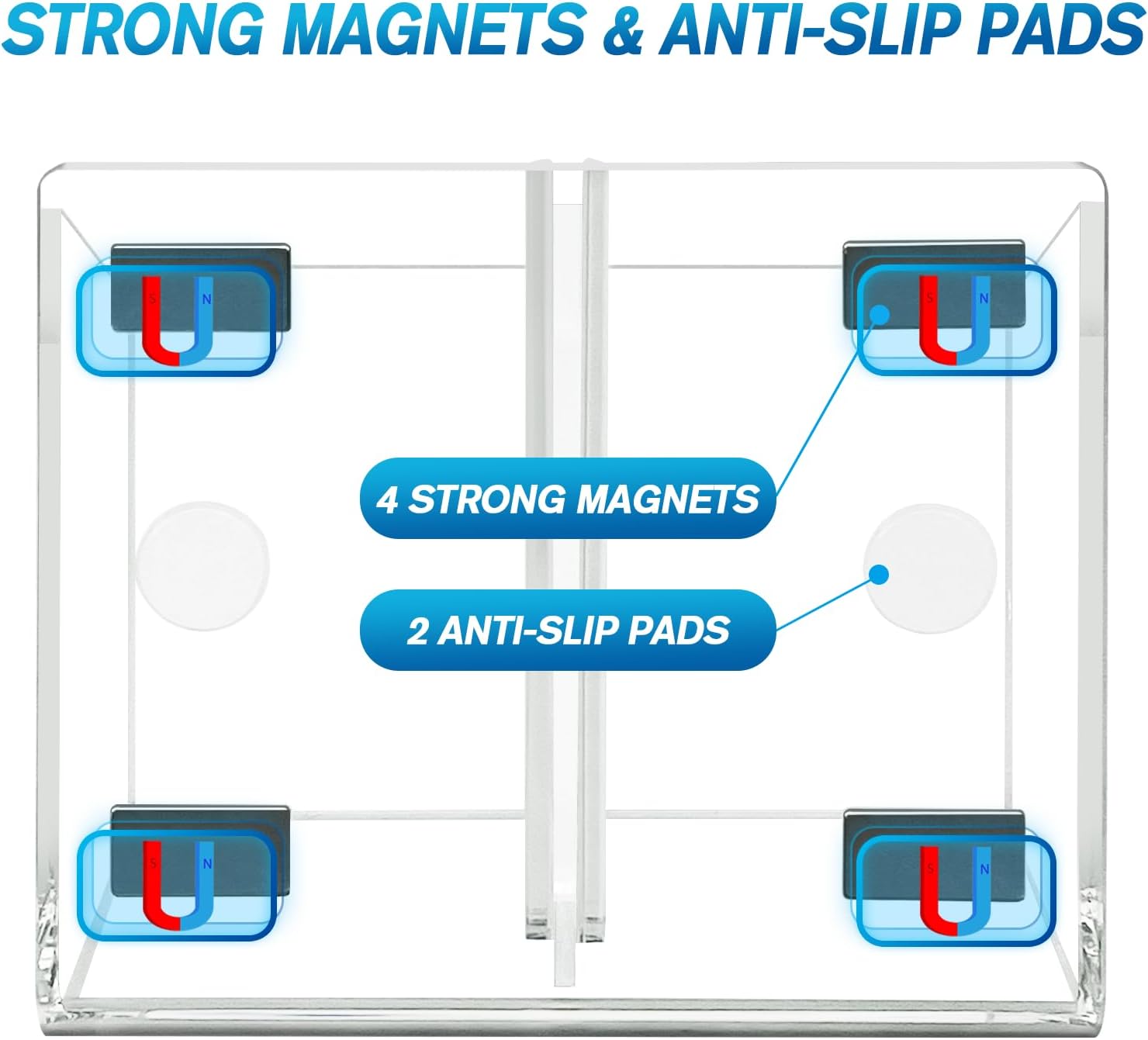 - 【Unrivaled Magnetic Adhesion】Our magnetic marker holder is equipped with 2 anti-slip pads and 4 strong magnets that guarantee a secure attachment to any metal surface, ensuring it stays exactly where you need it – no sliding, no falling. Please note that our acrylic clear magnetic dry erase marker holder does not apply to glass or plastic surfaces.