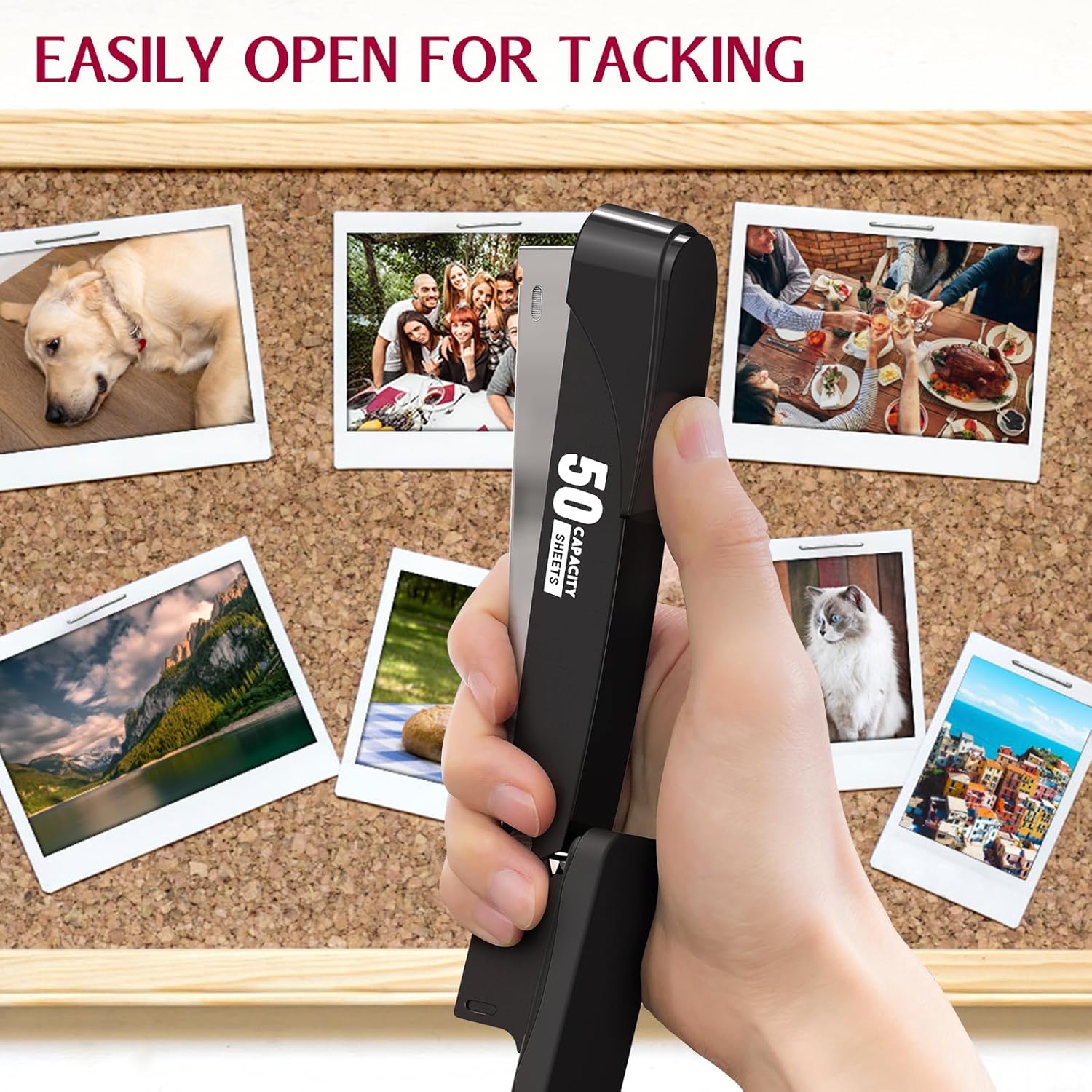 - 【Durable Metal Stapler】: Our stapler heavy duty with metal structure ensures high quality no-jam stapling and long term use. It can easily staples up to 50 sheets, a must have staples for desk, office and classroom.