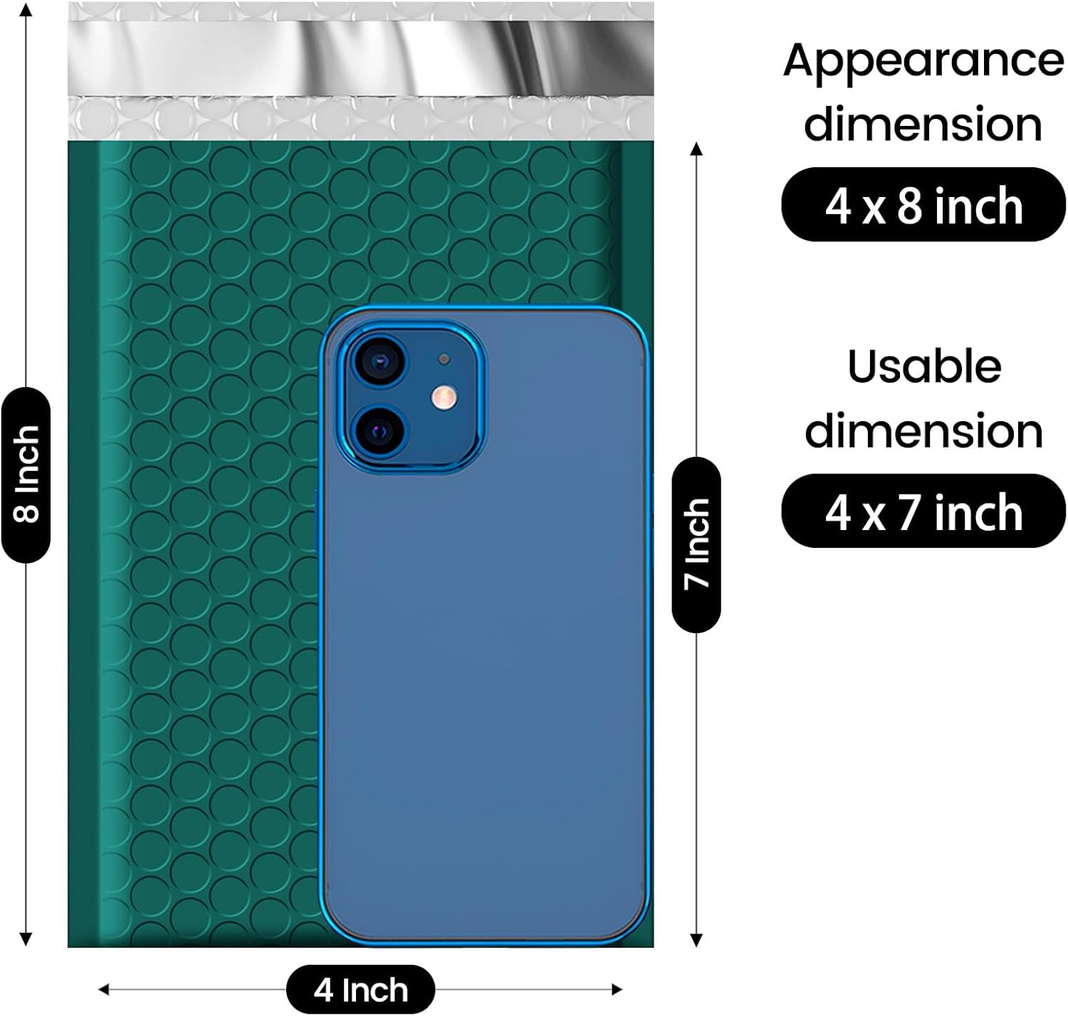 - Classic 4x8 Bubble Mailer: Our forest green bubble envelopes are a reliable shipping and packaging solution for your retail or online business.The small 000 bubble mailers outer size is 4x8 inch, while the inner size is 4x7 inch.