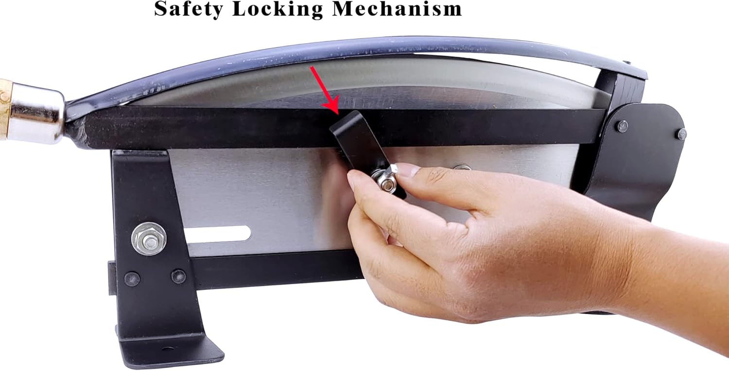 - 【Safety Locking Mechanism】 When not in use, the safety latch can be used to lock the blade. Can be mounted to removable boards or your fixed workbench (including screws, nuts, gaskets).