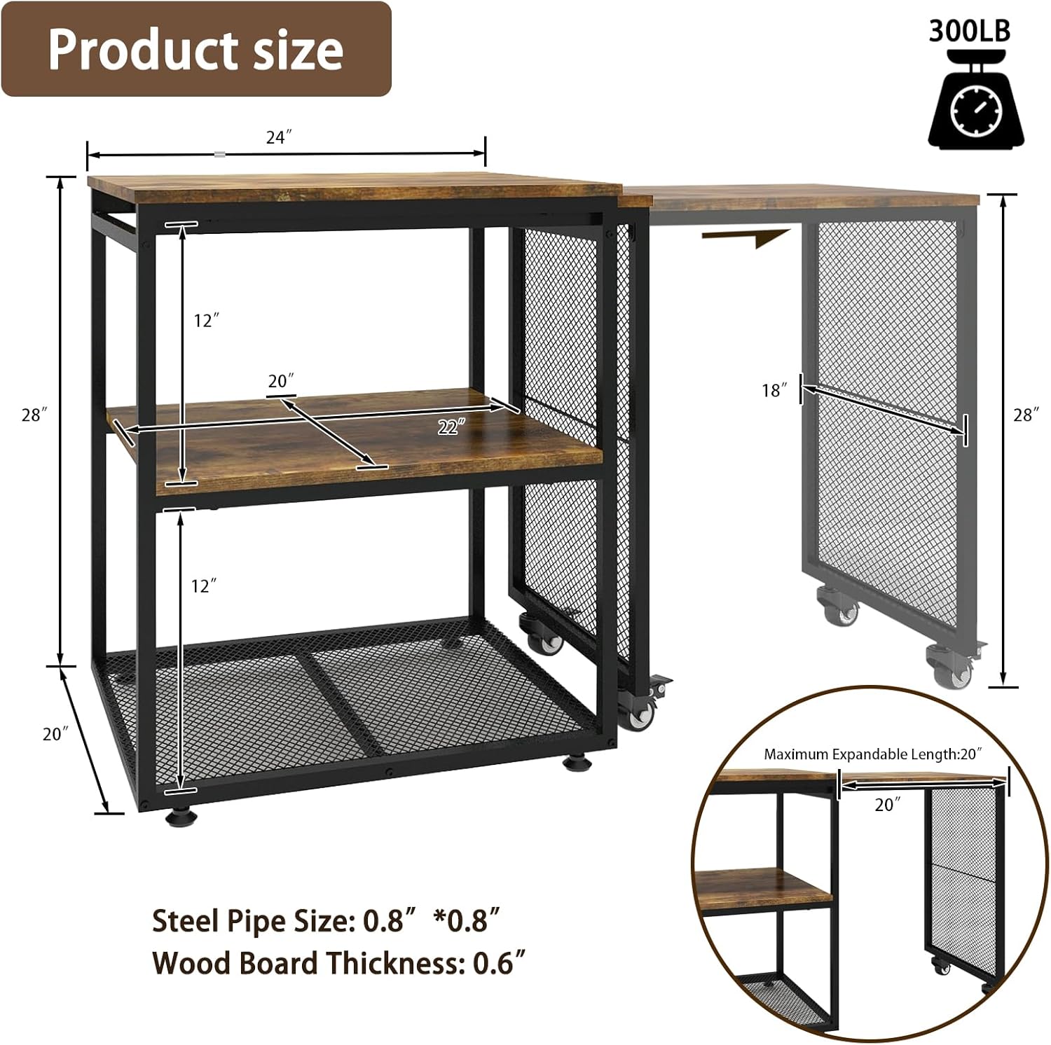 Natwind 24''x20''x29'' Large Printer Stand with Storage Shelves,Extendable Home Craft Table,Home Office Organization Desk, Versatile Table for Home Office, Kitchen, Study Room, Living Room (Retro)