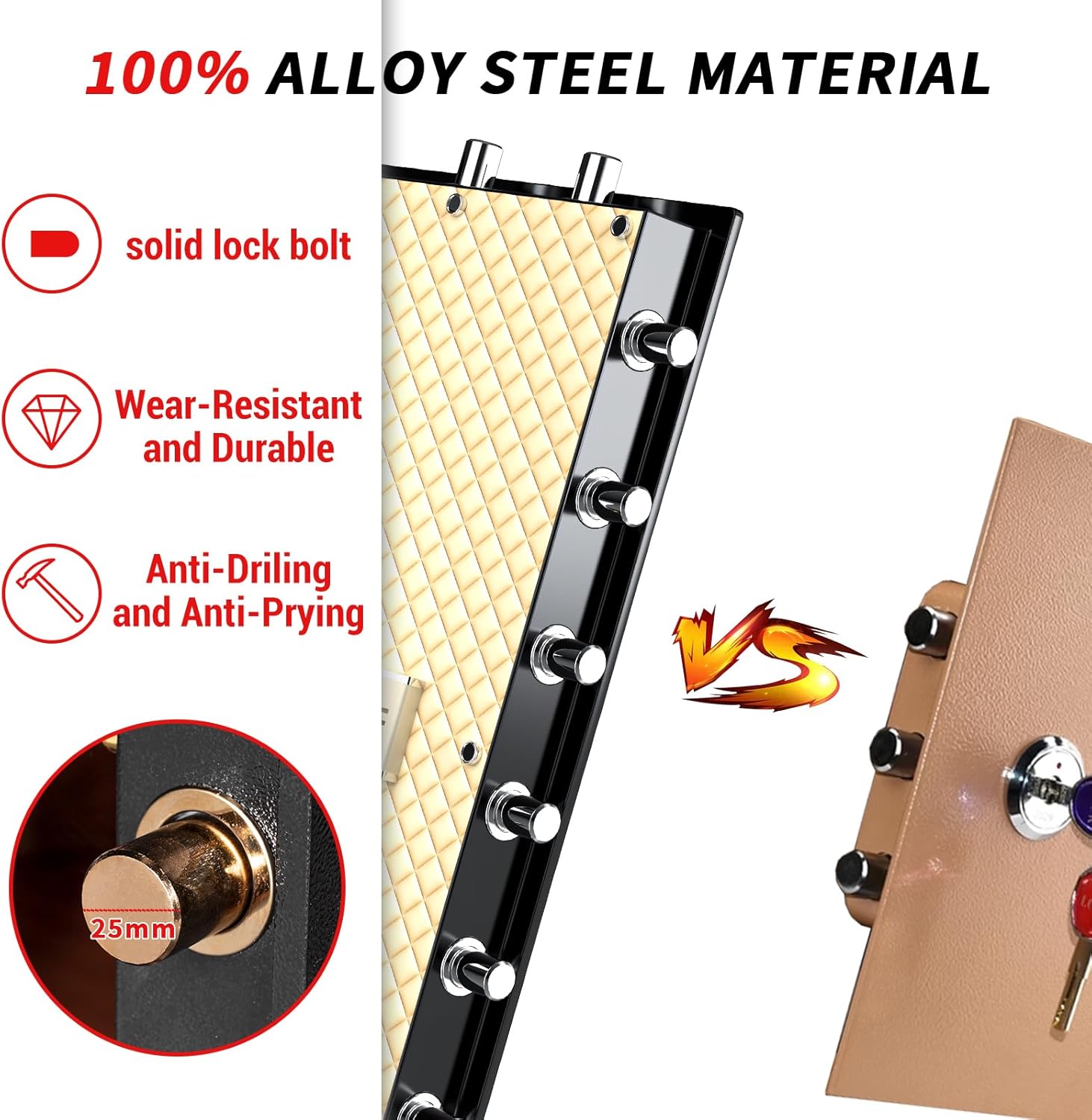 - [Sturdy and Durable Steel] The home safe box is made of 5 layer robust cold-rolled low carbon steel.We adopt advanced laser cutting technology seamless for no-pray, no smashing, no-drilling etc.The elegant surface like a mirror makes the smart safe an intelligent furniture.