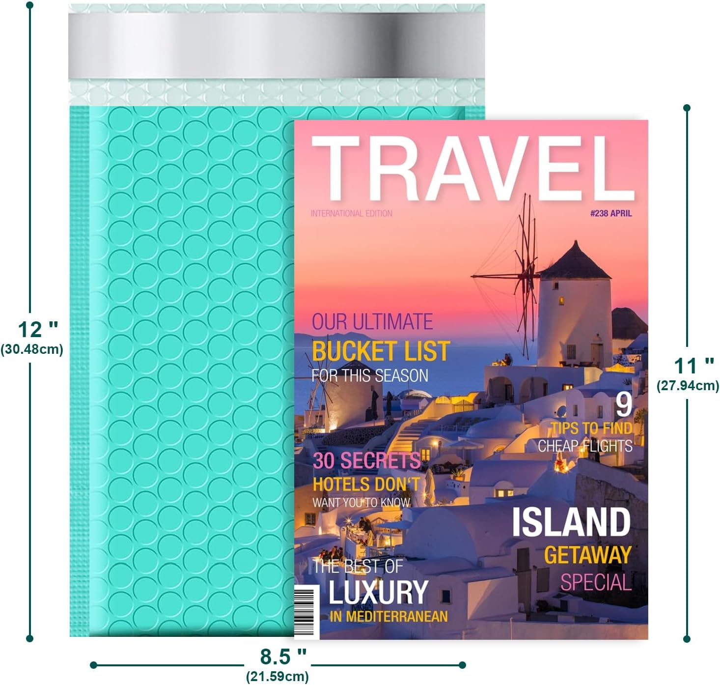 - Compact Private Bubble Mailers-- Usable Space: 8.5x11, Outer Size: 8.5x12 | Pack of 25 | Color: Teal. Lightweight polyethylene bubble envelopes cut transportation costs and enhance packaging allure with fashionable colors. Crafted from premium polyethylene, these poly mailers offer absolute privacy protection.