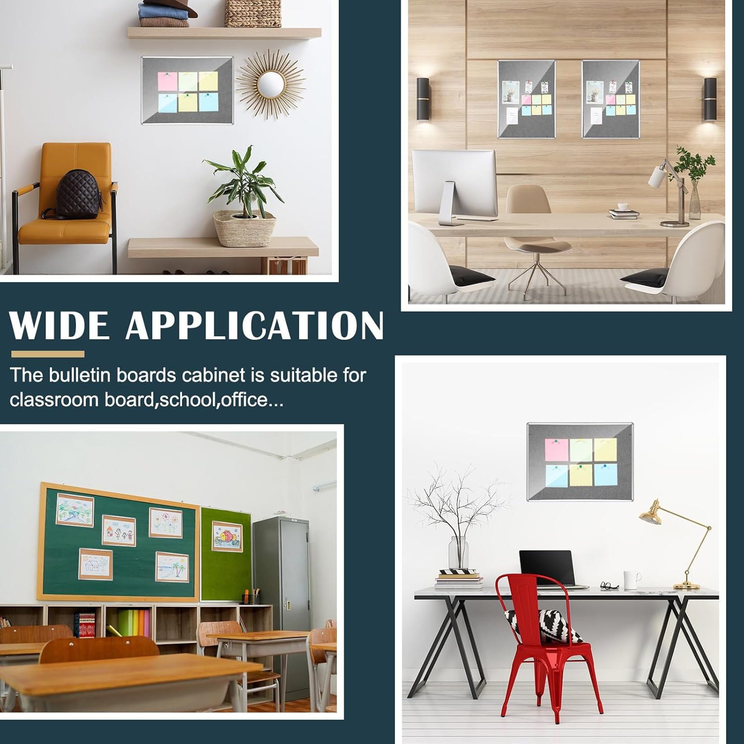 - Wide Application: the bulletin board cabinet is suitable for schools, offices, shops, homes, apartments, hospitals, dormitories, classes and other public places, and can be applied for multiple purposes, such as posting notice and announcements, displaying artwork or photos, and presenting public information
