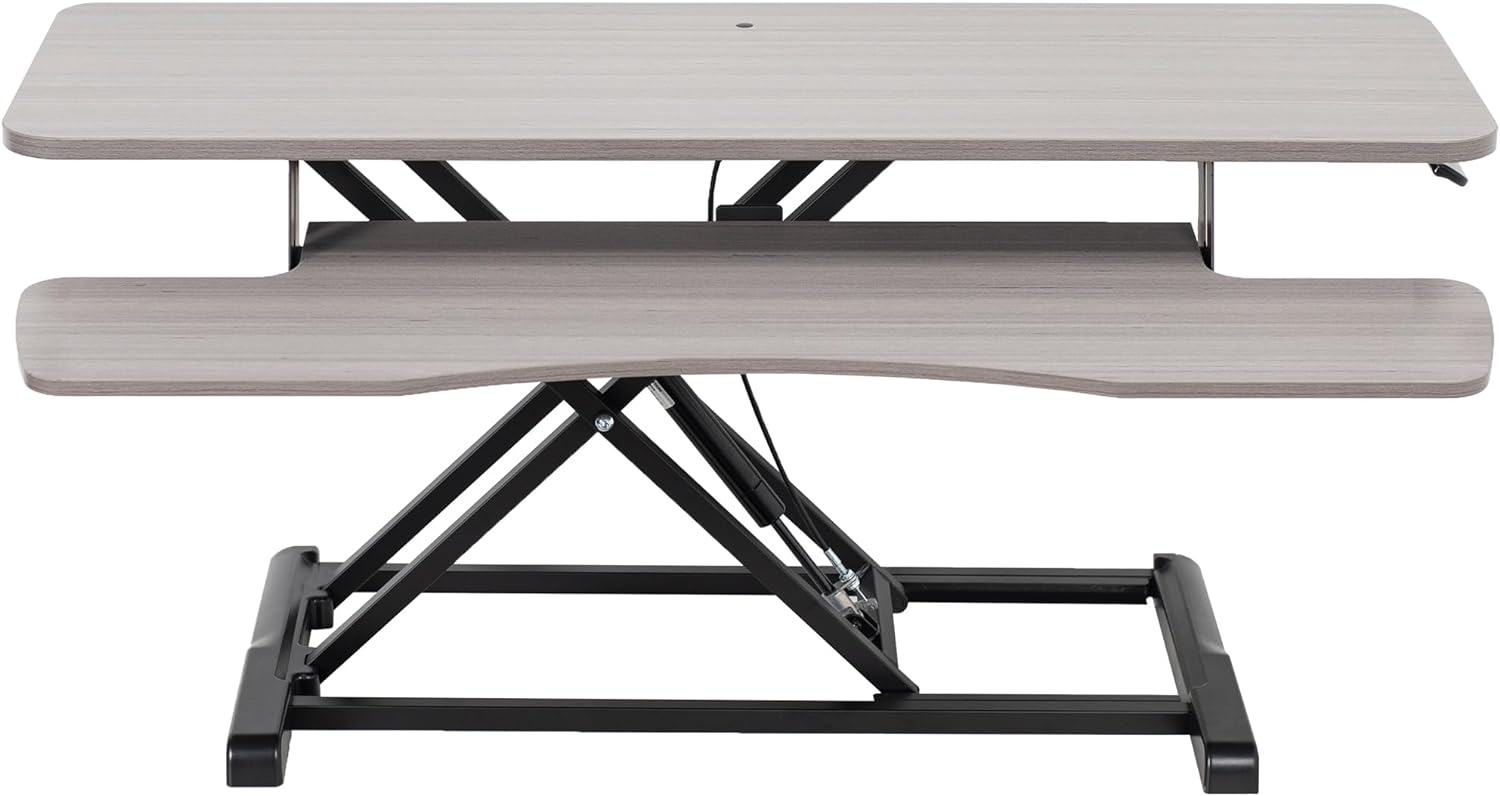 VIVO 36 inch Desk Converter, K Series, Height Adjustable Sit to Stand Riser, Dual Monitor and Laptop Workstation with Wide Keyboard Tray, Gray Top, Black Frame, DESK-V036KG