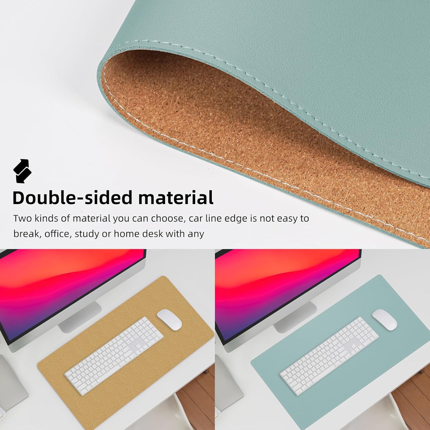 AFIING Dual-Sided Desk Pad, Natural Cork & PU Leather, Desk Mat Protector Non-Slip, Waterproof, Easy Clean,Large Mouse mats for Office and Home Work(Light Blue, 31.5"x17")