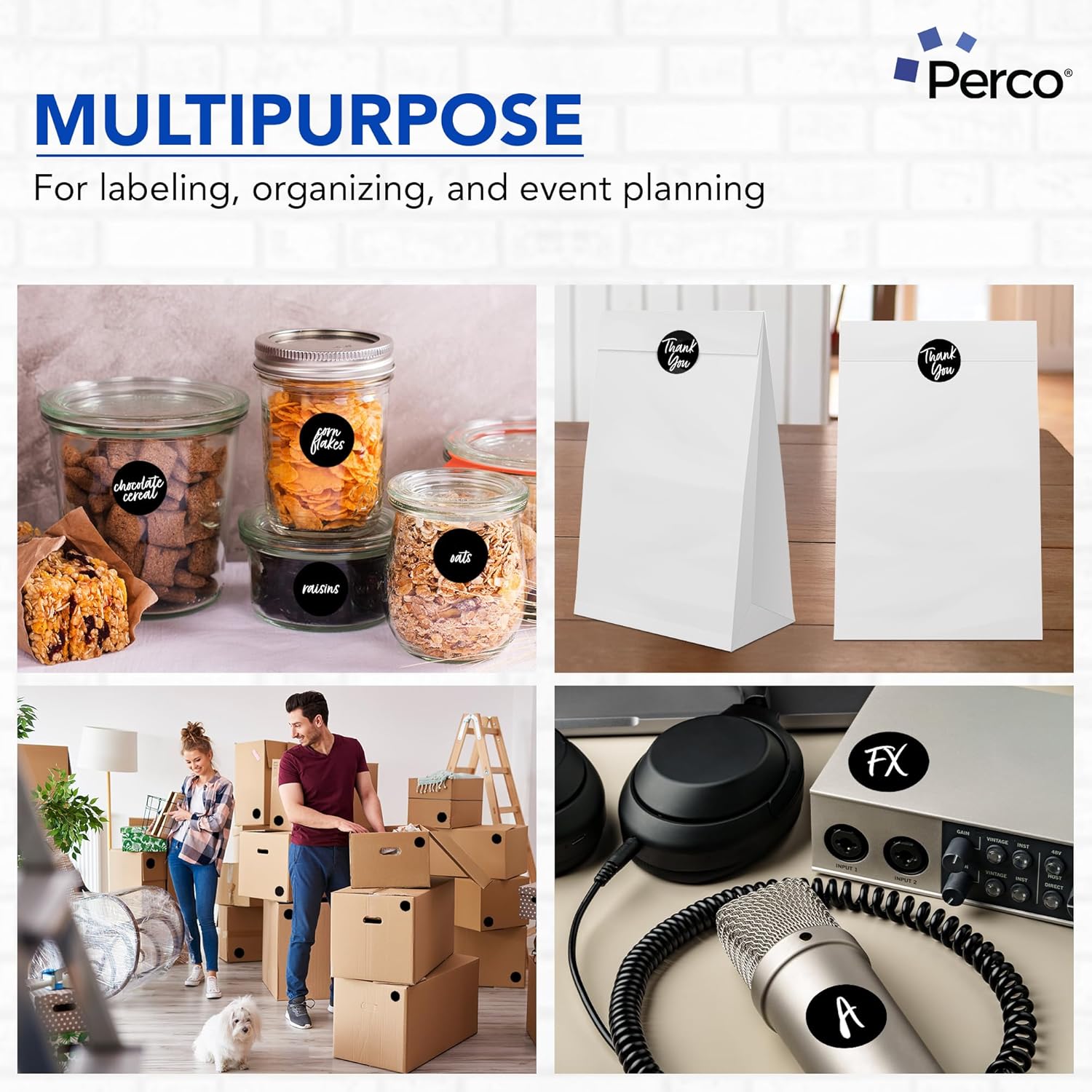 Perco Black 2-Inch Round Circle Dot Sticker Labels with Easy Peel Perforation - 500 Labels per Roll - Strong Adhesion, Vibrant Colors for Organizing, Crafting & More - Made in USA