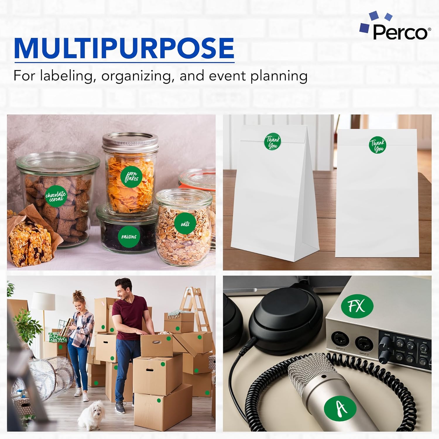 Perco Green 2-Inch Round Circle Dot Sticker Labels with Easy Peel Perforation - 500 Labels per Roll - Strong Adhesion, Vibrant Colors for Organizing, Crafting & More - Made in USA
