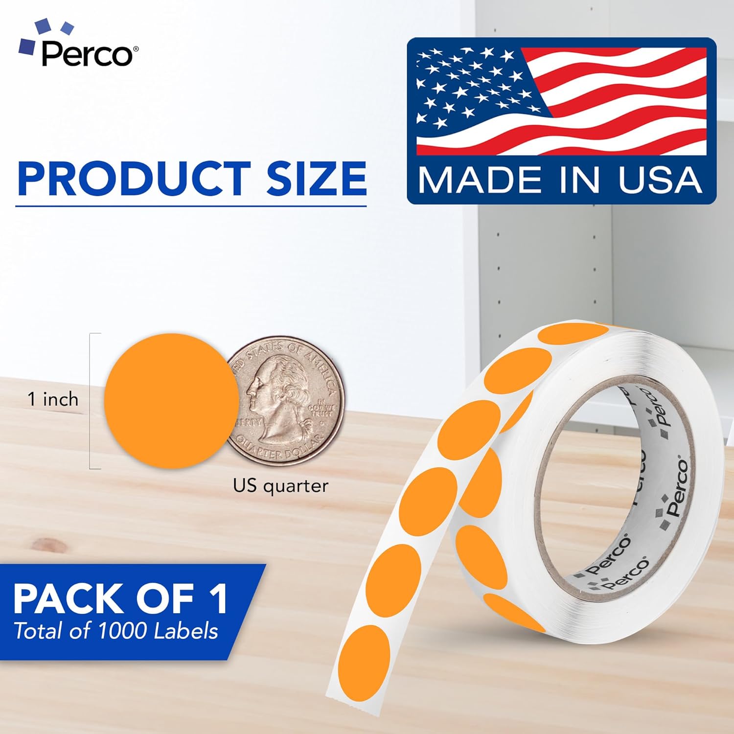 Perco Fluorescent Orange 1-Inch Round Circle Dot Sticker Labels with Easy Peel Perforation - 1,000 Labels per Roll - Strong Adhesion, Vibrant Colors for Organizing, Crafting & More - Made in USA