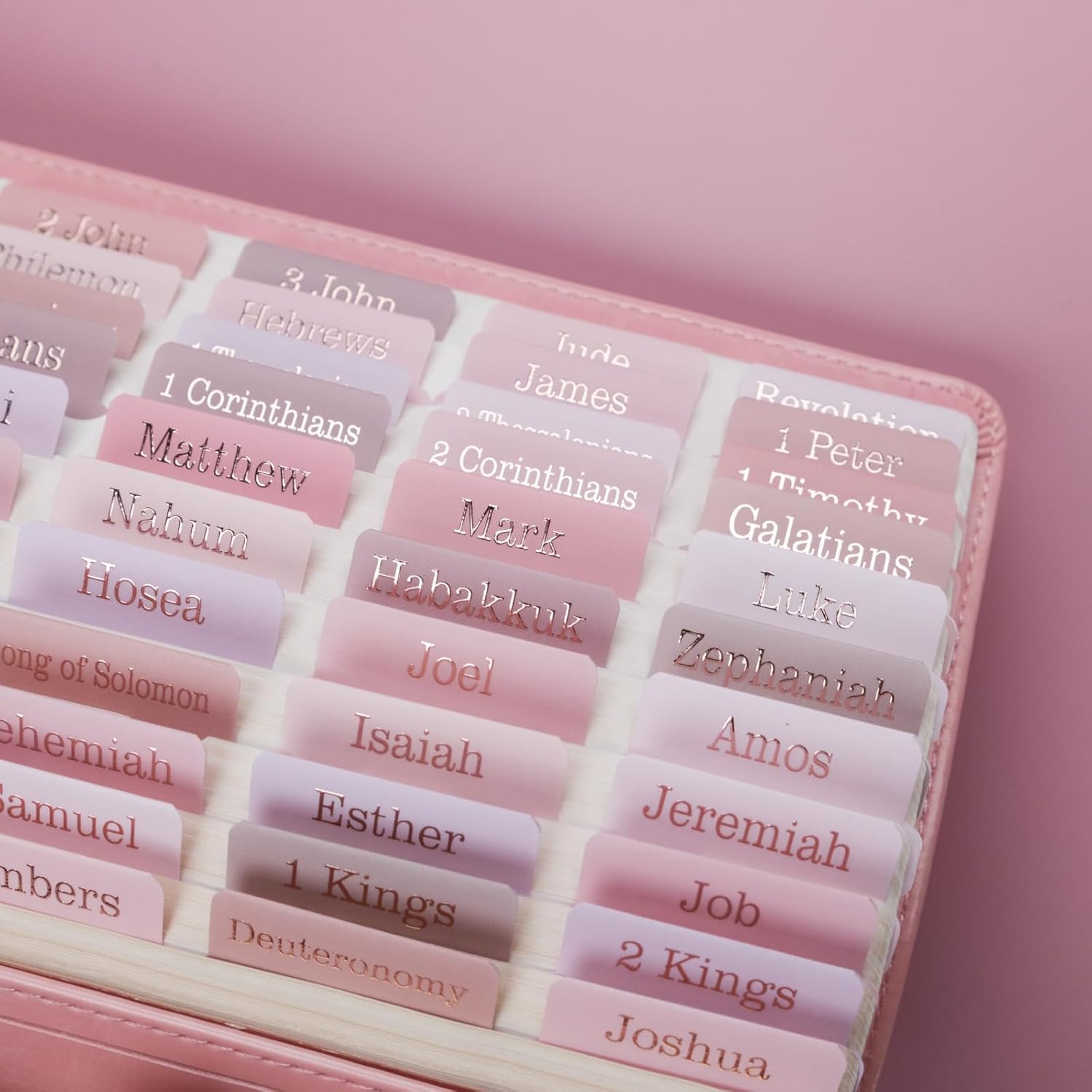 UPAFEXXI-Laminated Bible Tabs (Rose Gold Foil Embossed Lettering), Bible Tabs for Women and Men, Reposition Large Print Stickers, Easy to Read and Apply, 80 Chapters Labels for Easy Navigation(Pink)