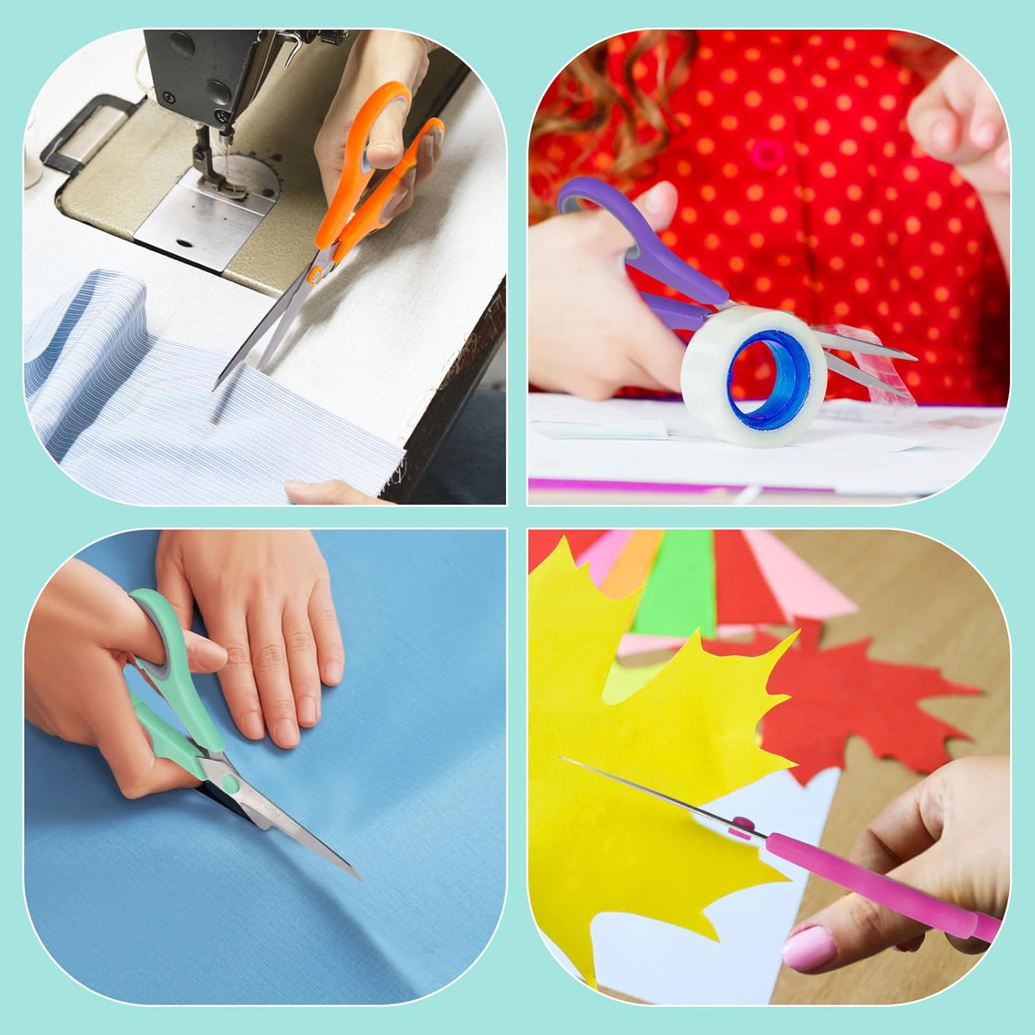 - Multipurpose/ Vibrant 6 Colors Pack Scissors: Classic Colors: Black, Red. Special Colors: Aqua, Pink, Purple, Orange. Different Colored Scissors, Can Be Used In Different Places. Ease to holding, work perfectly for their crafting for many different tasks. Comfortable to use in: Office, School, House Household, High/Middle School Students Teacher, Sewing Fabric Art Craft DIY, laundry room, bathroom, garage, kitchen or other occasions supplies.