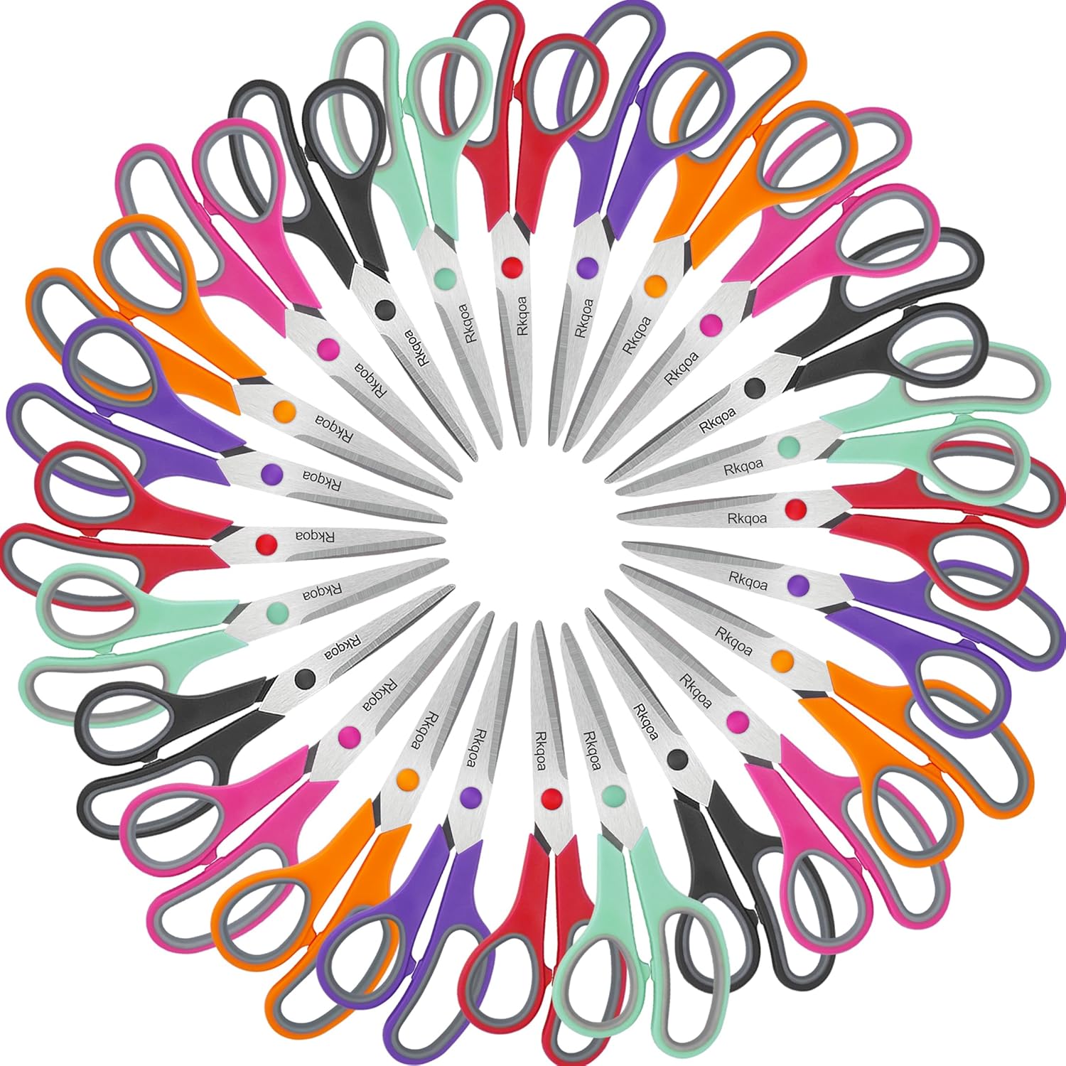 24 Pack Scissors, Rkqoa 8" All Purpose Classroom Scissor Bulk Comfort-Grip Sharp Shears for Office School House Sewing Fabric Craft Supplies, High/College School Teacher Student Scissors
