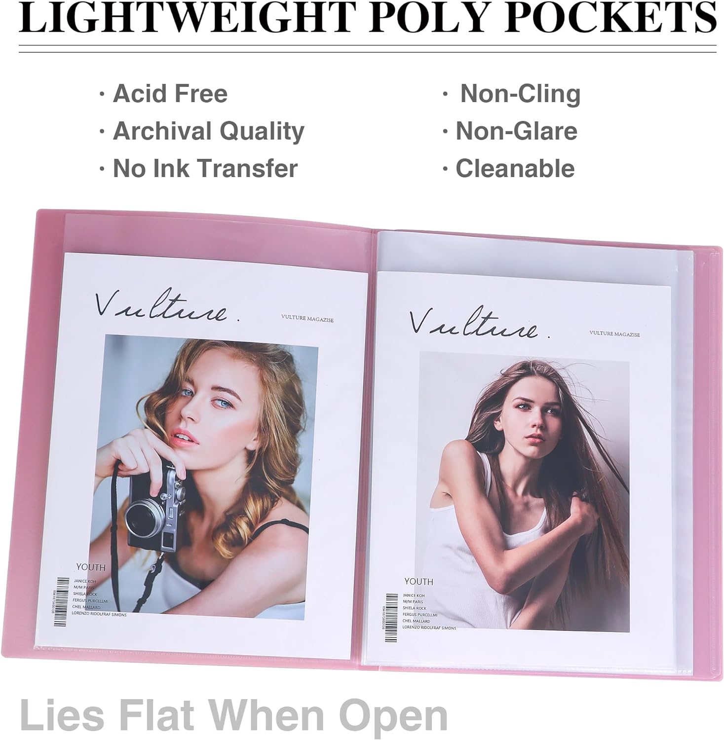 - 𝐄𝐚𝐬𝐲 𝐭𝐨 𝐔𝐬𝐞:The plastic cover of the binder has a matte textured surface, reducing glare and leaving no fingerprints; The wide opening makes the paper easy to slide in and out, and the viewing and browsing are also very clear and convenient.