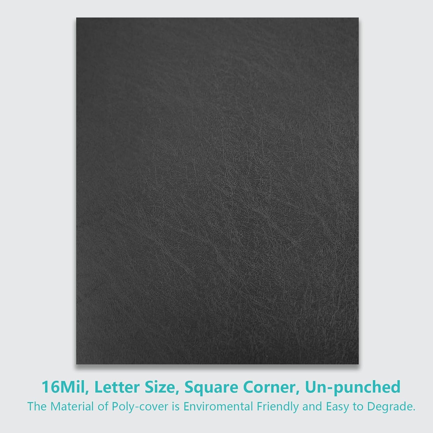 Binditek 100 Pack 16 Mil Leather-Textured Heavyduty Polycovers, Plastic Binding Presentation Covers, Letter Size, 8-1/2 x 11", Square Corners, Un-Punched, Black