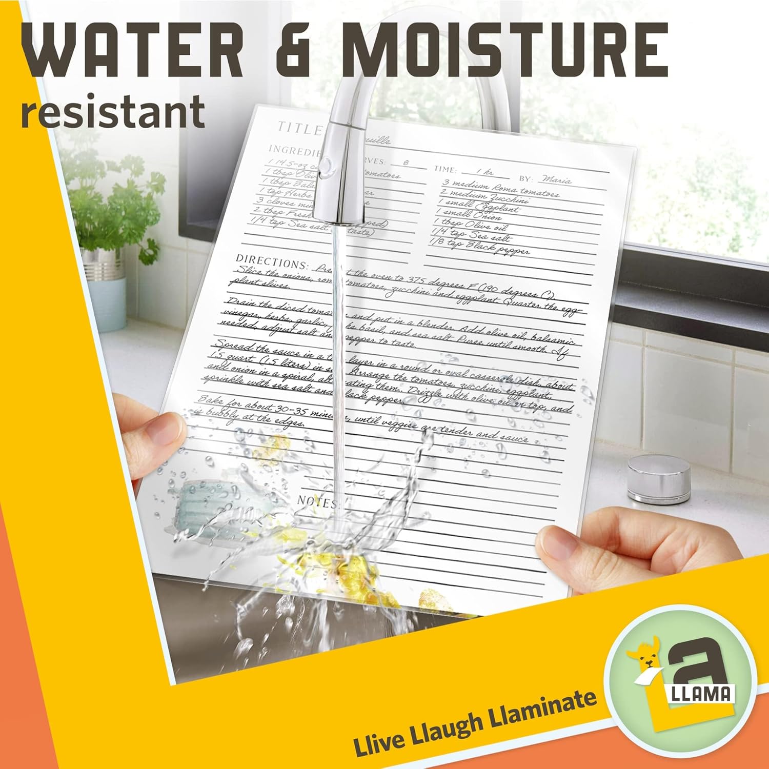 - 🦙 MATTE FINISH WITH ROUNDED CORNERS: Made with high-quality materials, matte thermal laminating pouches provide a smooth, glare-free, smudge-proof clear laminate surface; No air bubbles, wrinkling, peeling, and color fading - your menus, posters, documents, photos, and artwork are guaranteed to look pristine