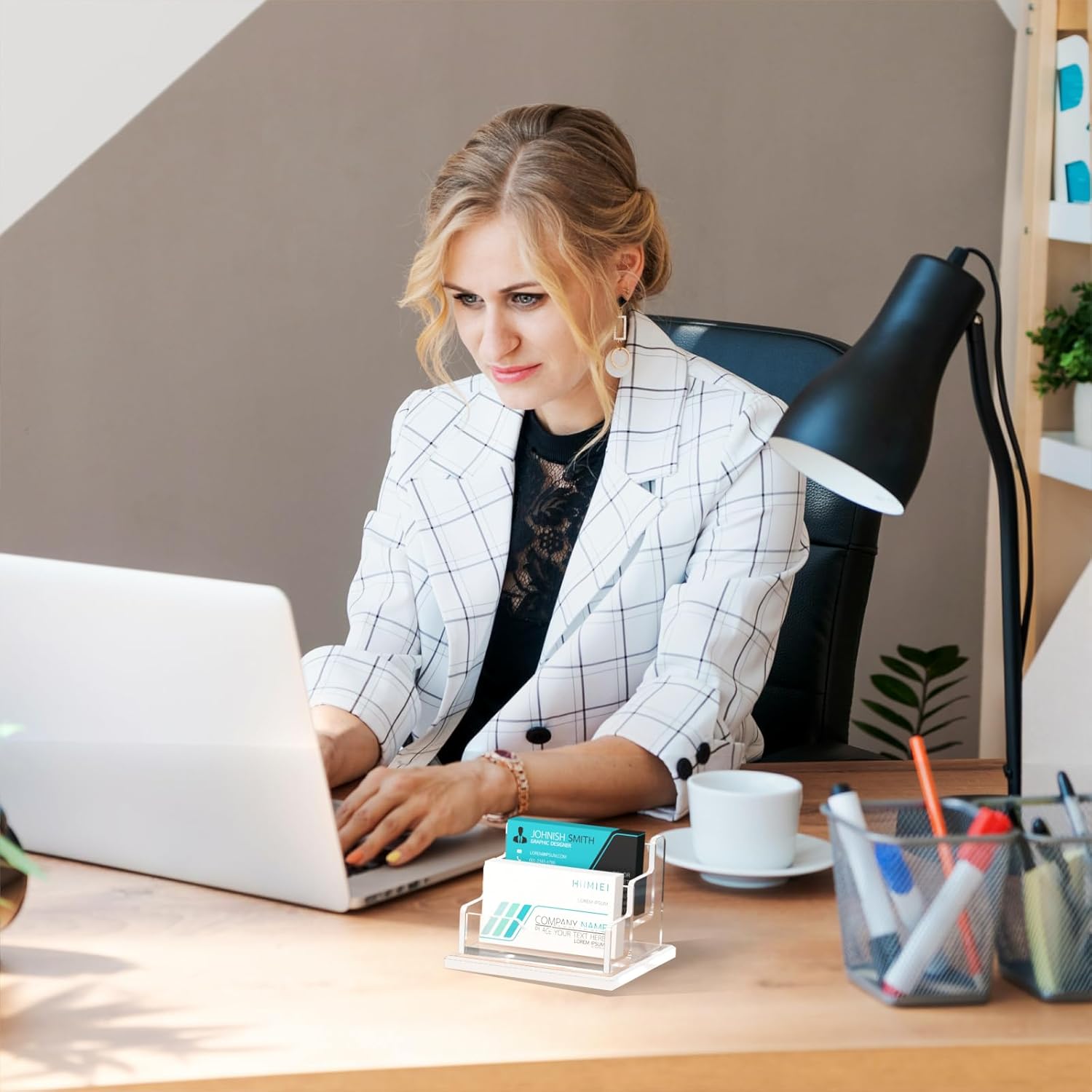 HIIMIEI Acrylic Business Card Display, Multiple Card Holder for Office, Home, Restaurant - 2 Slot, 2 Tier