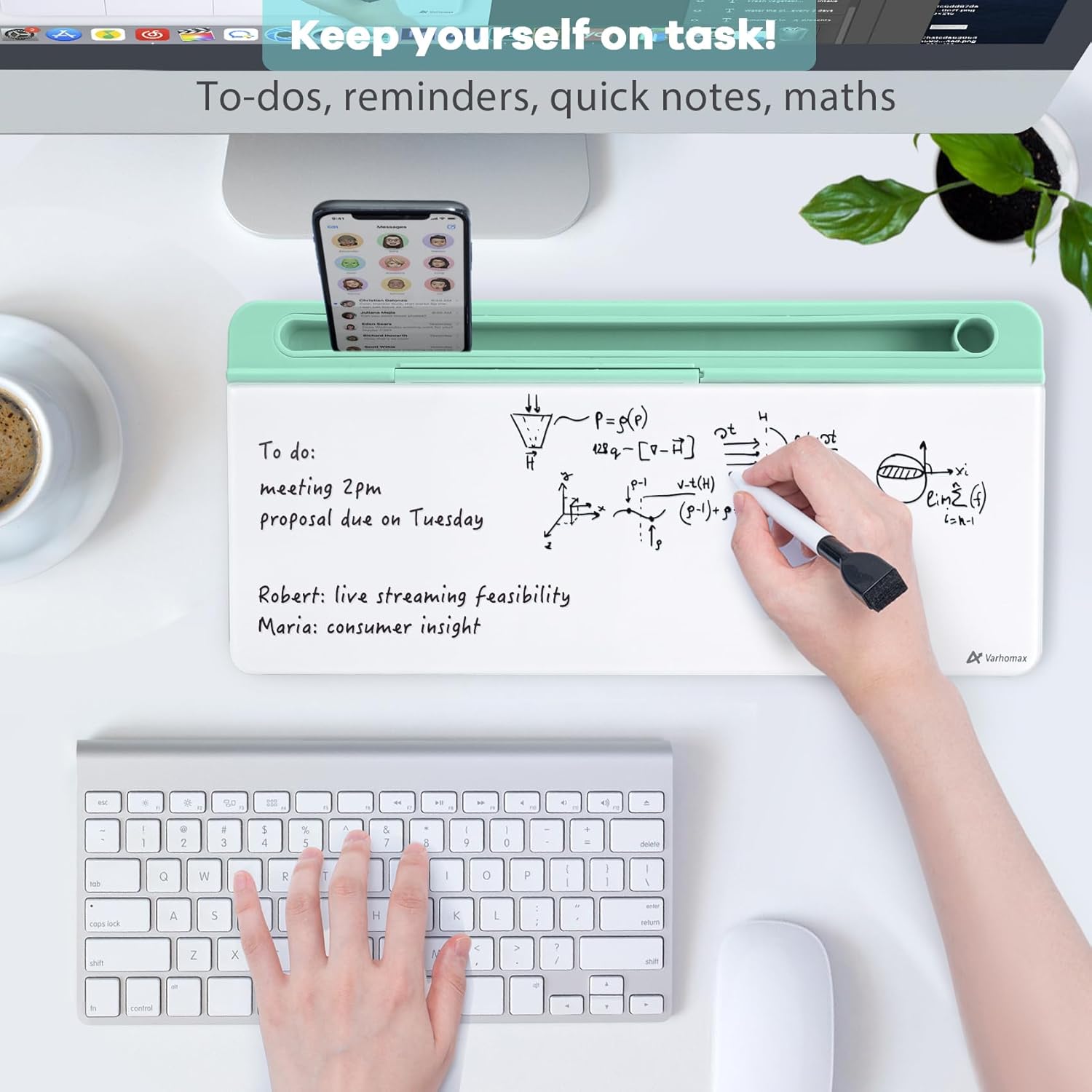 - Desktop Memo: Sitting compactly between your monitor and keyboard, this small desktop glass whiteboard makes it easy for you to jot down quickly memos like to dos, reminders, schedules, phone numbers and brainstorm ideas during work, zoom meetings, phone calls and online class.