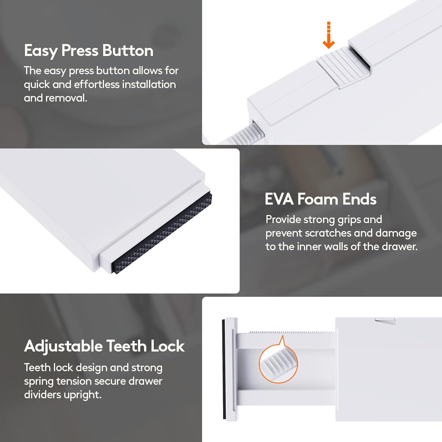 Lifewit 4 Pack Drawer Dividers 4" High,11-17" Adjustable Dresser Drawer Organizers for Clothes, Expandable Dresser Separators in Bedroom/Bathroom/Kitchen/Vanity/Office Organization and Storage, White
