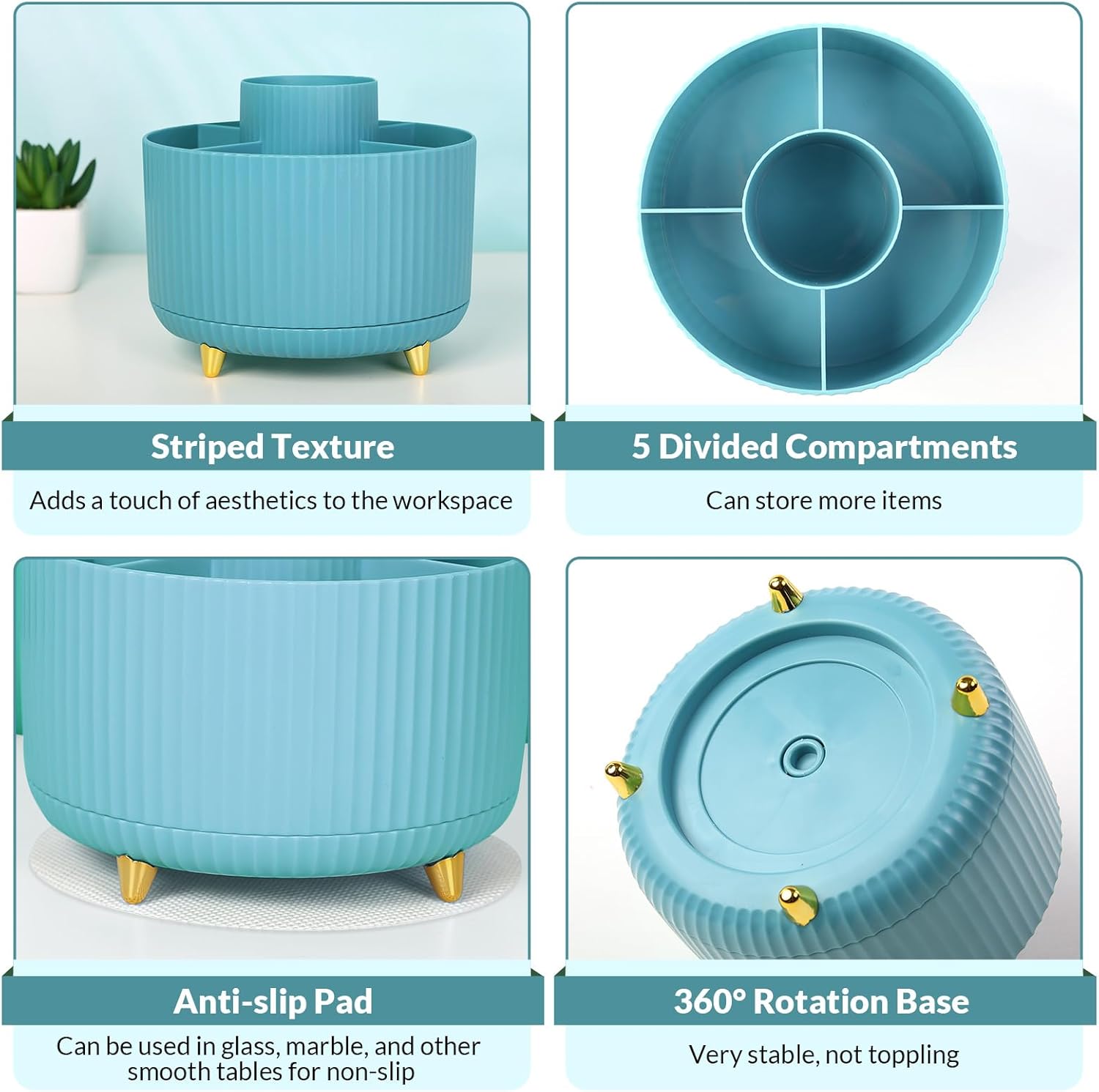 - Versatile Desktop Organizer: Whether you need to store everyday office supplies, art supplies, kitchen cooking condiments, or organize cosmetics and skincare products, this rotating pen holder caters to your requirements