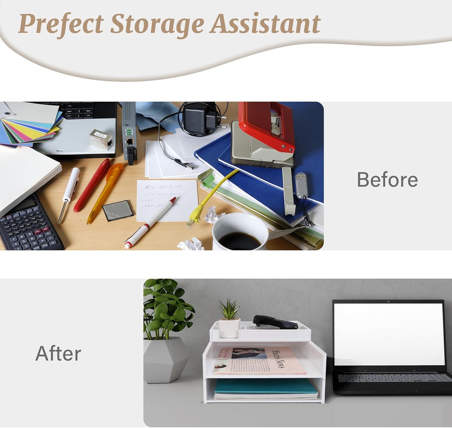 - Stackable A4 Size Paper Trays-Come with 3 Pcs Oranizers Set, Conveniently stack ,each modern stackable letter tray to free up space on your desk in your home,office,or classroom to keep your workspace neat and tidy,offering valuable space-saving convenience.