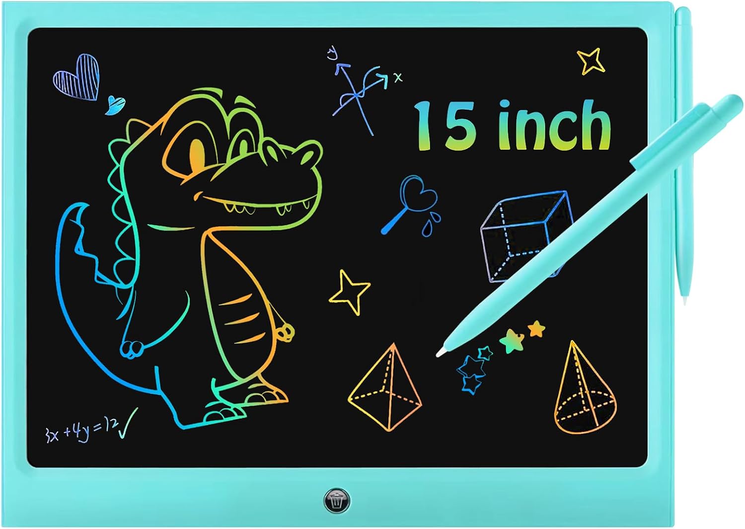 - Eye Protection LCD Screen: LCD Writing Tablet adopts the 2023 newest LCD pressure-sensitive technology and an 15 inch LCD colorful screen.This drawing pad is for kids without radiation, and with no glare, safe and comfortable for long-time use. Effectively prevent children's myopia.