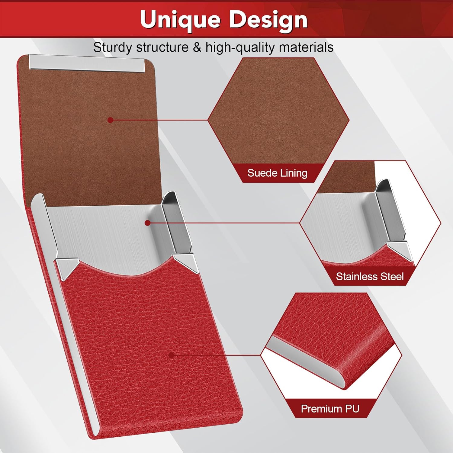 Business Card Holder with Ultra Slim Design, Business Card Case with Premium PU Leather, Suit Pocket Metal Card Holder for Women/Men, Magnetic Closure Quick Access Cards