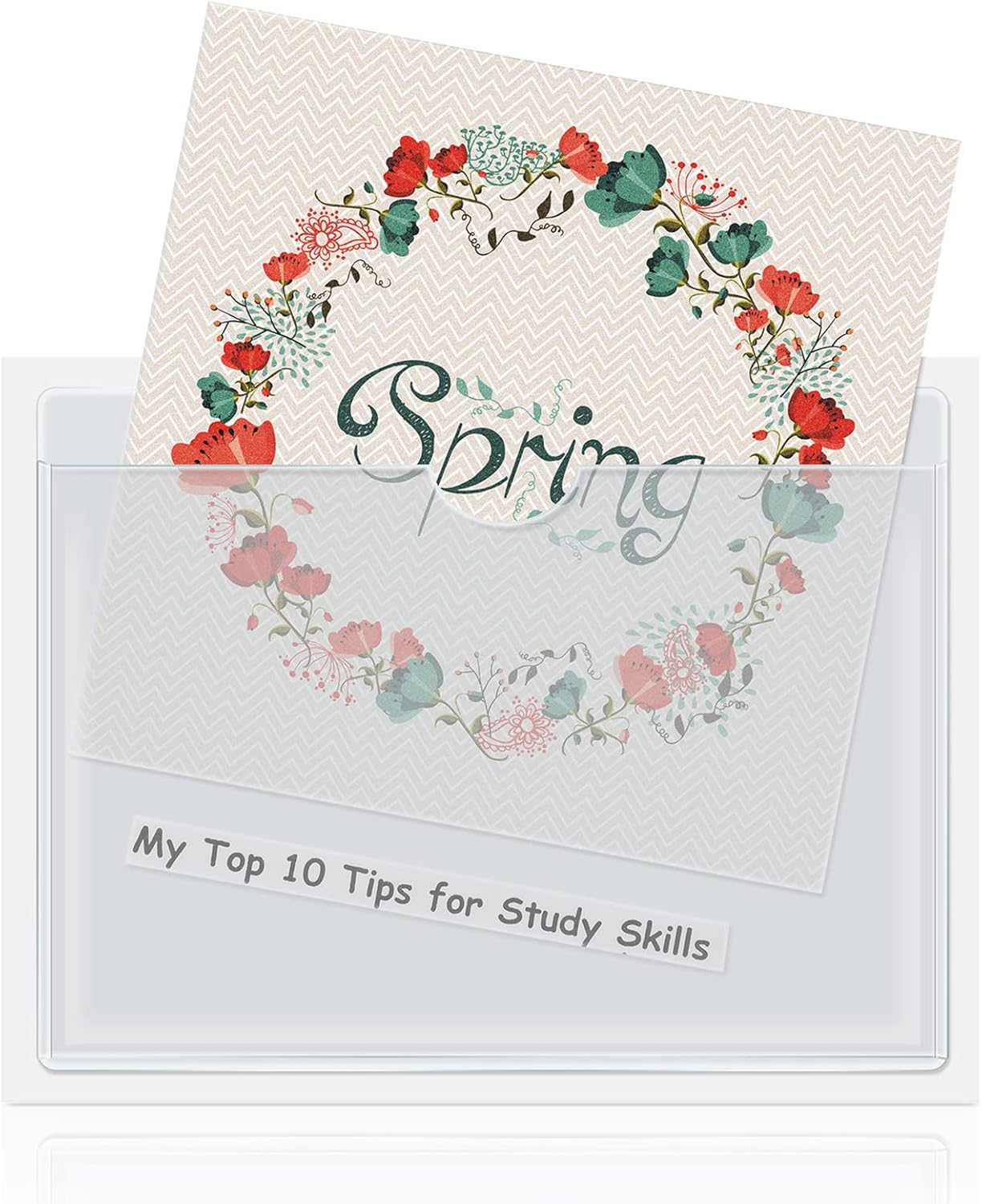 - Design Characteristics: with the top open design, you could insert and remove a card without issues; The back has a peel away liner, Put your cards into the card pocket, tear off the back sticker, you can stick the self adhesive pockets at your desk, classroom and other places; The semicircle cutout allow you grasp the card easily