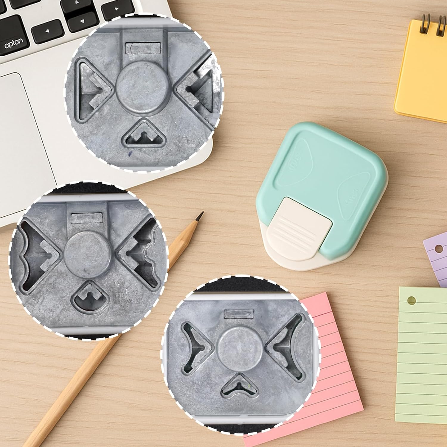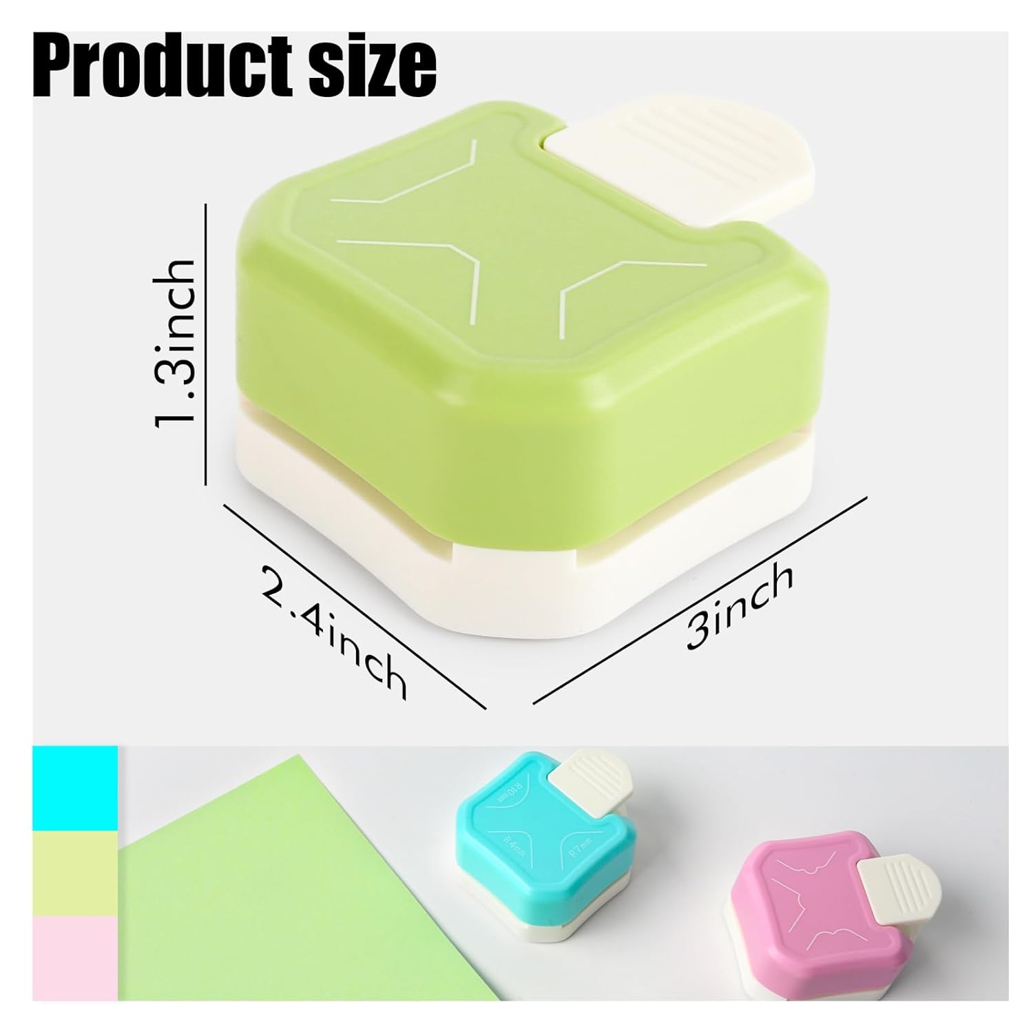 - 3 in 1 Corner Rounder Punch: inclued 3pcs, 1 rondered corner (R4mm+R7mm+R10mm), 1 beauty shape corner, 1 chamfer corner, all in a three-in-one design