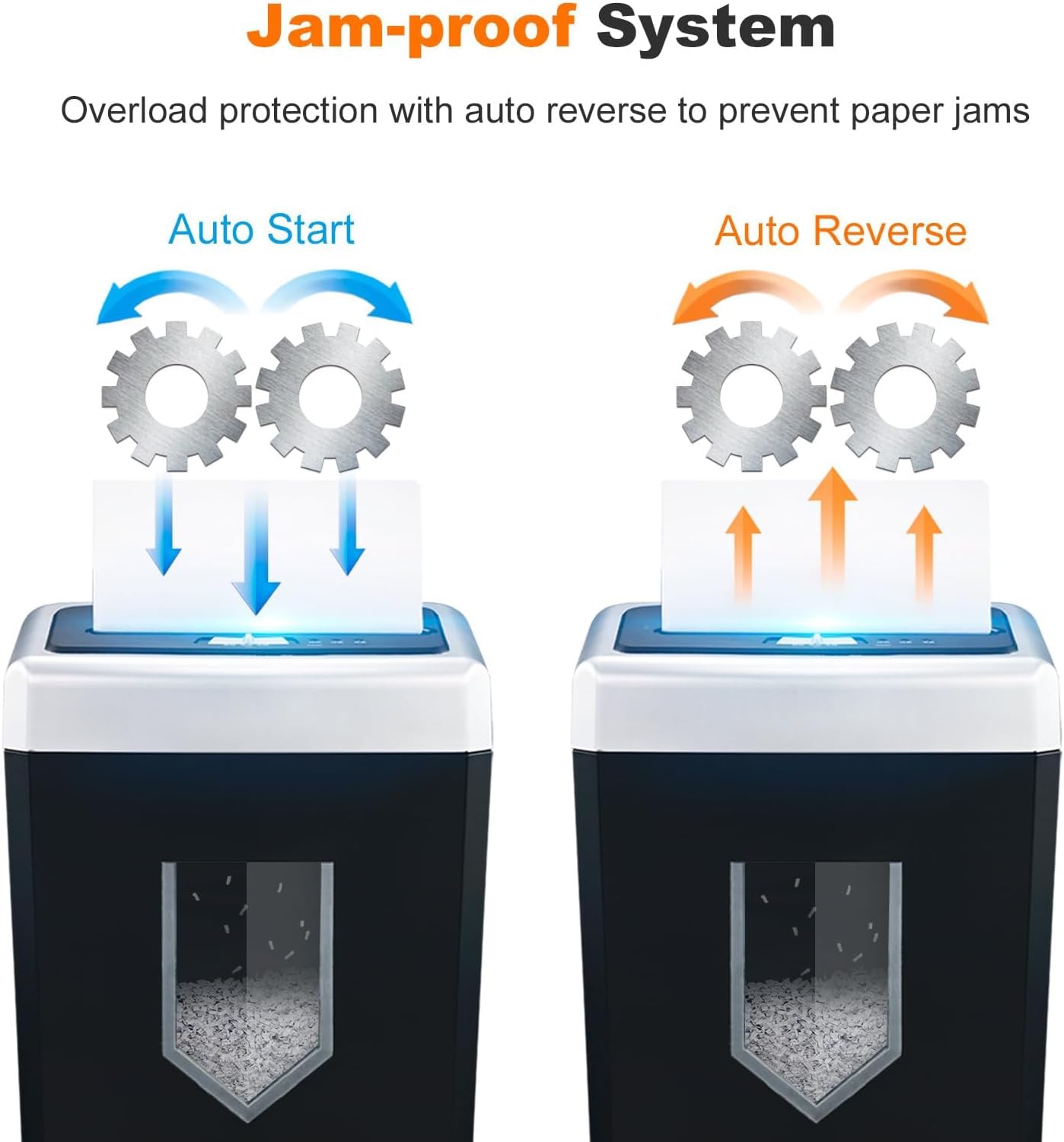 - 【Shredder for Home Office Heavy Duty】Based on the patented cooling system, the paper shredder for office heavy duty runs continuously for 40 mins without stopping and destroys about 2900 sheets of paper, efficiently completing shredding tasks without worrying about overheating or slowing down.
