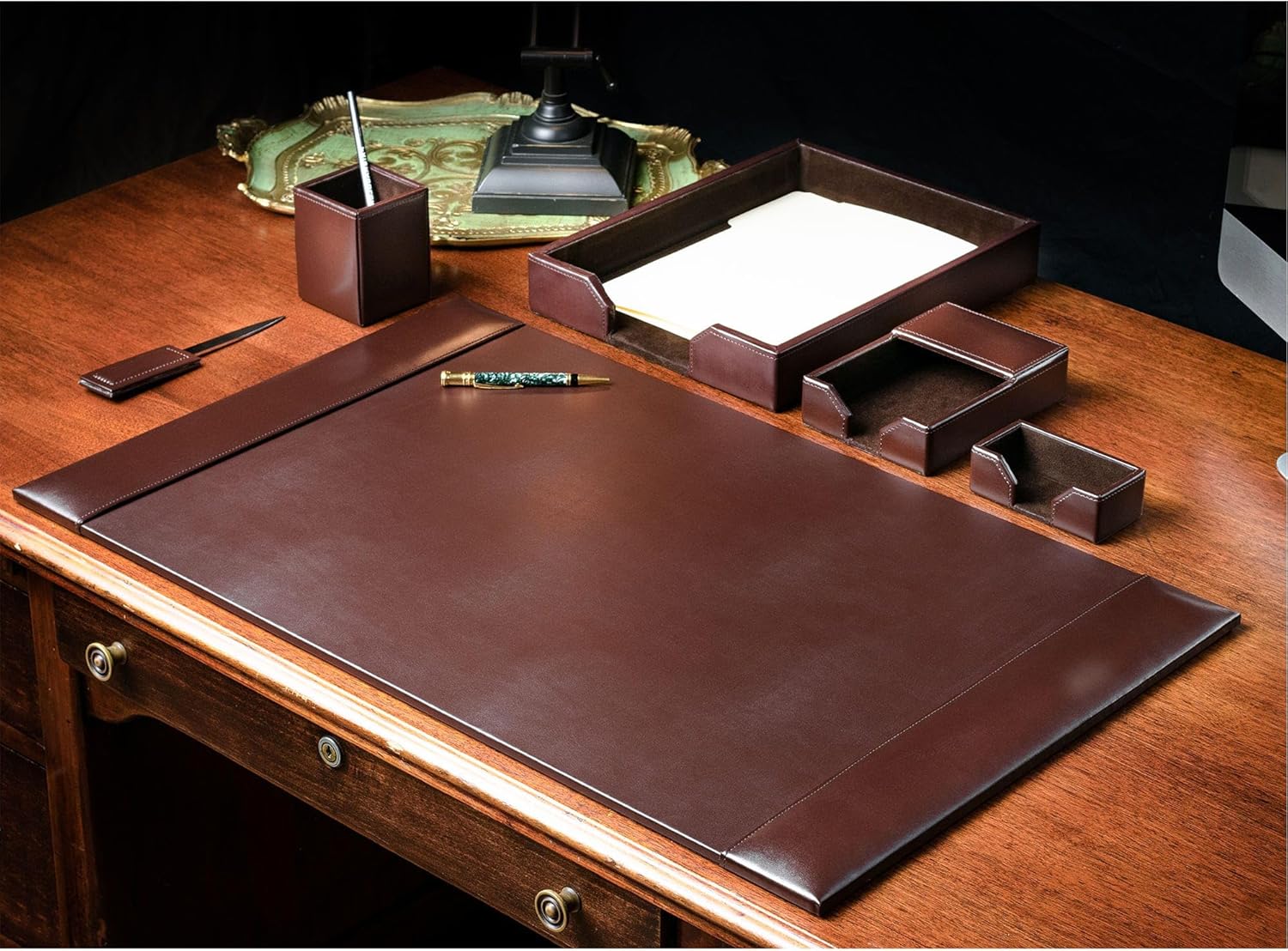 - LUXURY WITHOUT THE PRICETAG: All components of this set are made with beautiful bonded leather, allowing you the elegance of a leather office desk set without breaking the bank. From the soft, supple surface to the fine stitching and precise edges, each handcrafted piece is created with the utmost care and attention to detail.